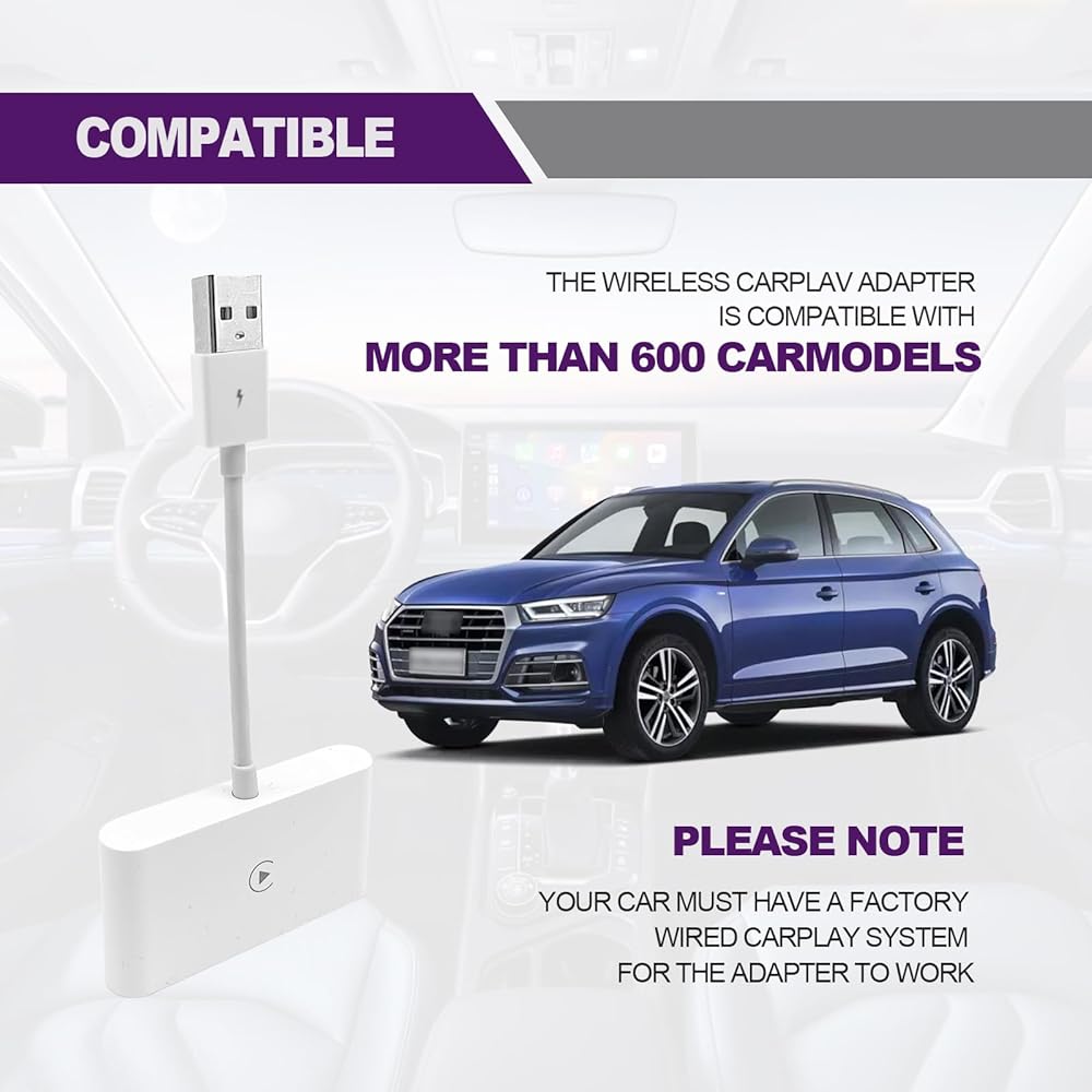 • 【توافق أوسع】التوافق مع أكثر من 600 طراز سيارة. يرجى ملاحظة أن سيارتك يجب أن تحتوي على نظام CarPlay سلكي في المصنع حتى يعمل المحول. يمكنك استخدام منتجاتنا لترقية مشغل السيارة الخاص بك إلى الوضع اللاسلكي لسهولة الاستخدام.