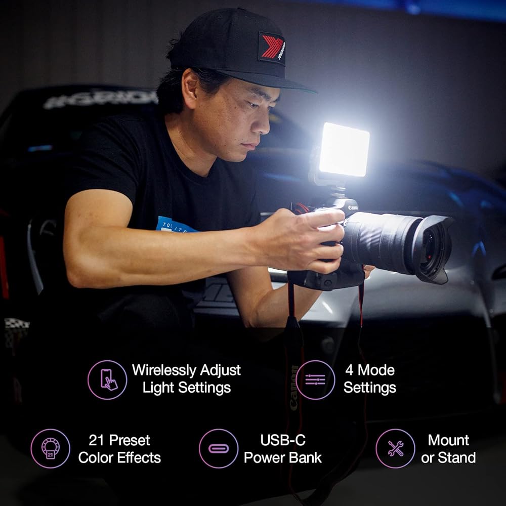 ضبط إعدادات الإضاءة لاسلكيًا - إن امتلاك القدرة على ضبط إعدادات الإضاءة بسهولة يمكن أن يحدث فرقًا كبيرًا عند محاولة الحصول على تلك اللقطة المثالية. مع ضوء الفيديو LC360، يمكنك ضبط إعدادات الإضاءة لاسلكيًا بسهولة. ببساطة قم بتوصيله بشبكة لاسلكية وافتح تطبيق نوع اس ليد للوصول إلى مجموعة واسعة من خيارات ضبط الإضاءة.