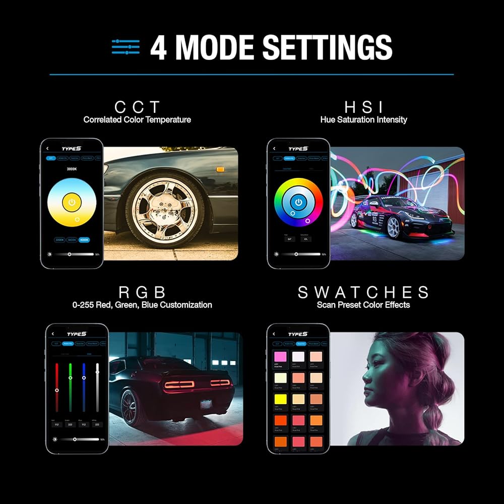 4 أوضاع لإطلاق العنان للإبداع - يأتي مصباح الفيديو LC360 مزودًا بأربعة أوضاع لمساعدتك على تحقيق الإضاءة المثالية لاحتياجات التصوير الفوتوغرافي أو التصوير بالفيديو: CCT (درجة حرارة اللون المرتبطة)، اتش اس اي (كثافة تشبع التدرج)، RGB (0-255 الأحمر والأخضر والأزرق)، وSCN (تأثيرات الألوان المحددة مسبقًا).