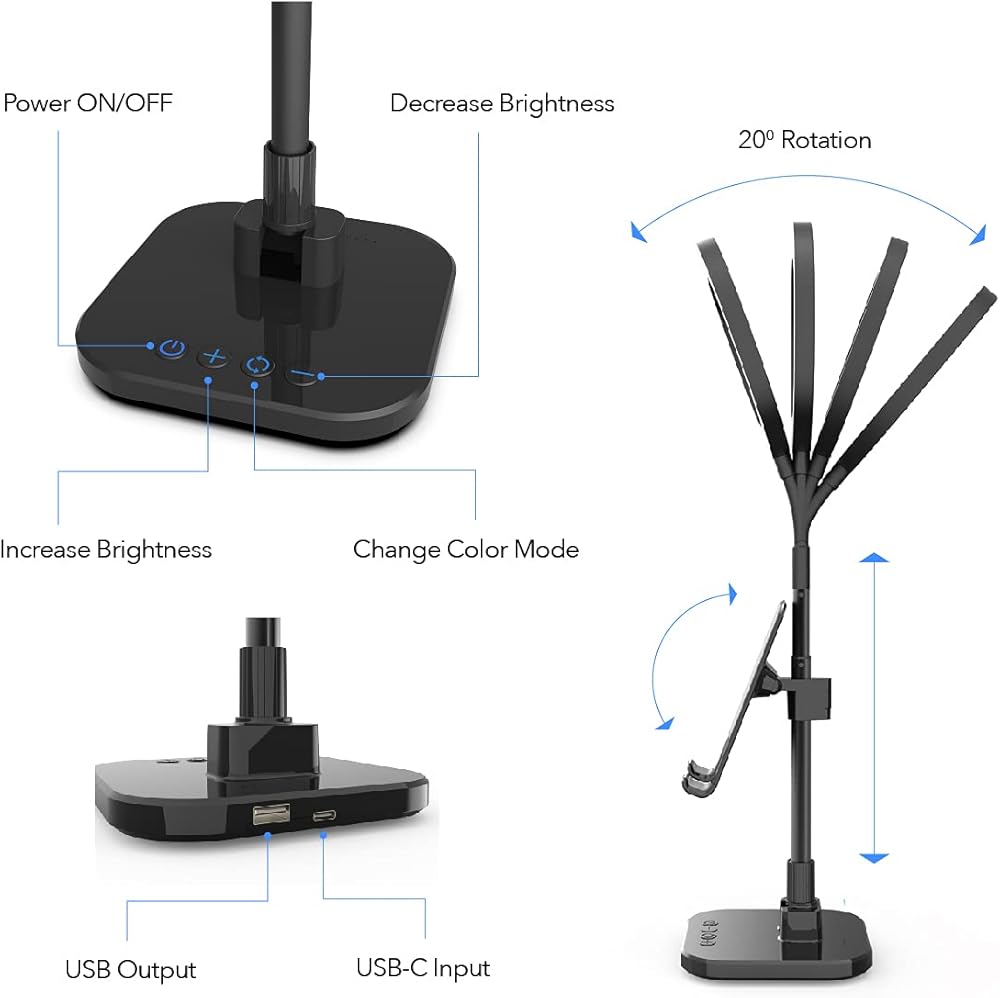 مصباح مكتب النجاح الحديث مع حامل الهاتف الذكي والتابلت مثالي لمكالمات الفيديو وإضاءة مكان العمل.