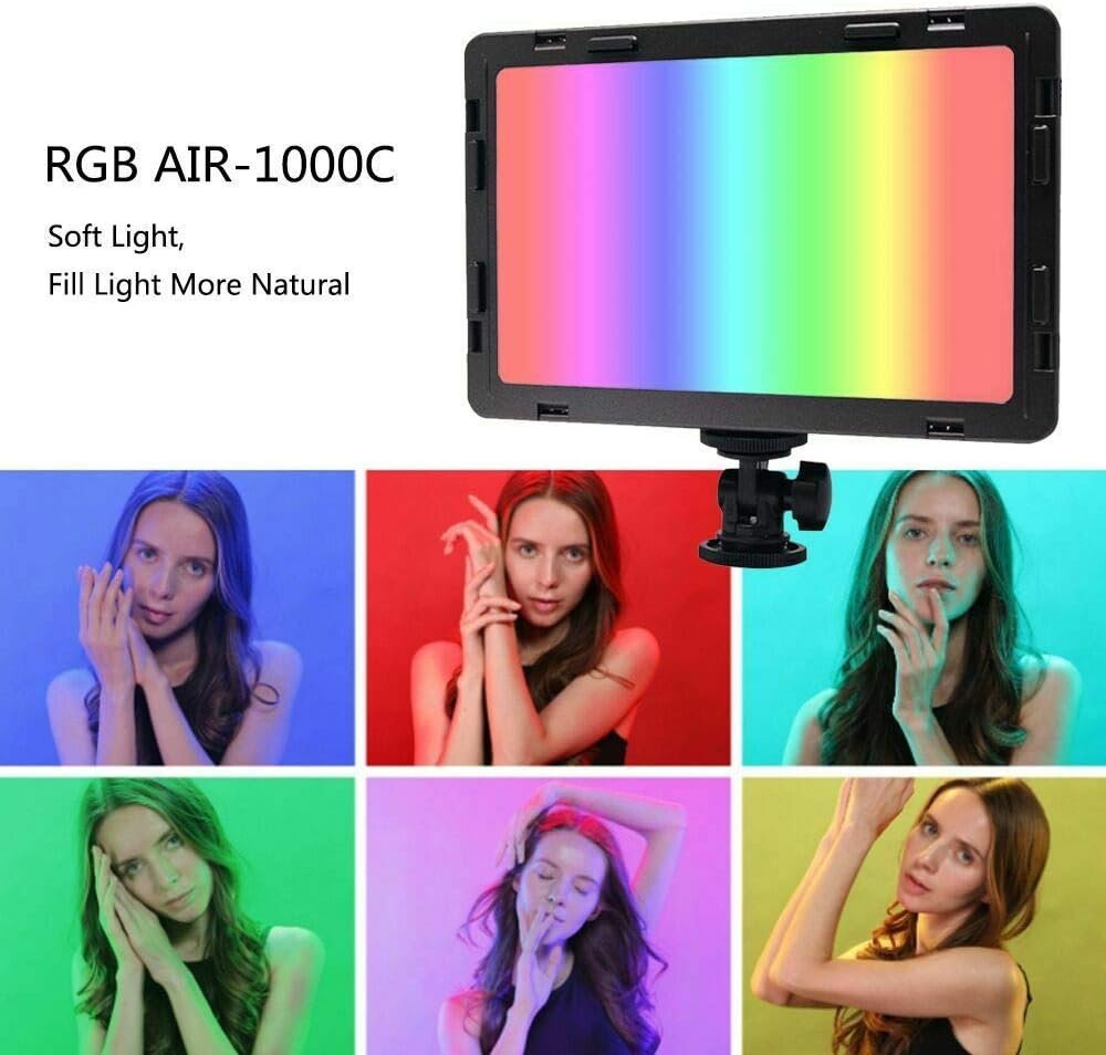 مكوبلوس مصباح اير 1000C متعدد الالوان 360 لون RGB LED لوحة رفيعة، درجة حرارة لون قابلة للتعديل 3200-5500 كلفن لكاميرا كانون ونيكون وسوني دي اس ال ار وكاميرا الفيديو