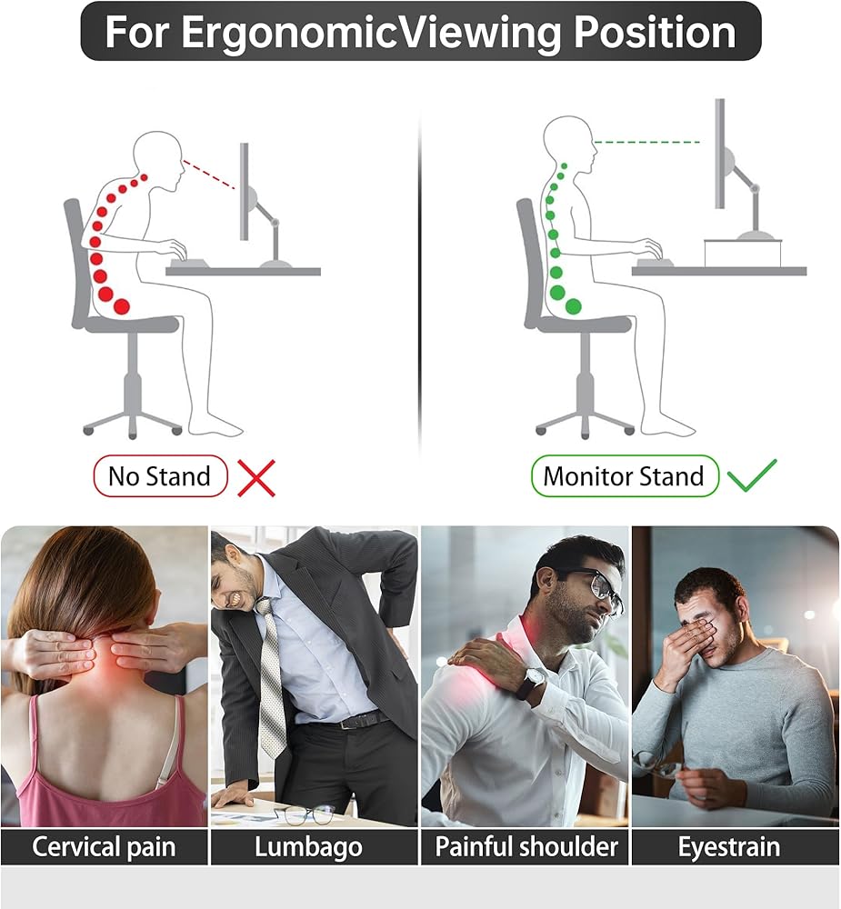 【تصميم مريح】تم تصميم حامل شاشة الكمبيوتر هندسيًا بأبعاد محسوبة بعناية لتوفير الارتفاع البصري المثالي والزاوية للحفاظ على رأسك وجسمك في وضع مريح طبيعي. تقليل الانزعاج في الرقبة والظهر. سوف تستمتع بتجربة عمل أكثر راحة واسترخاء.