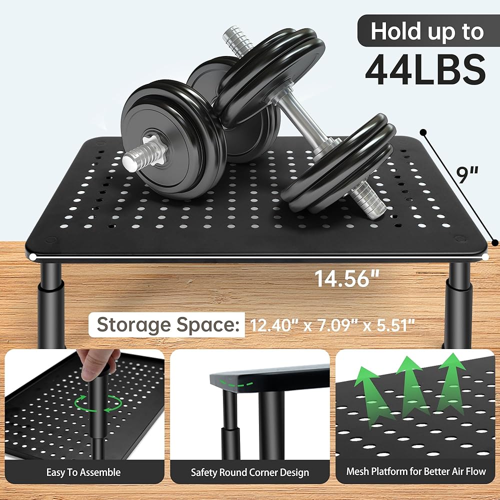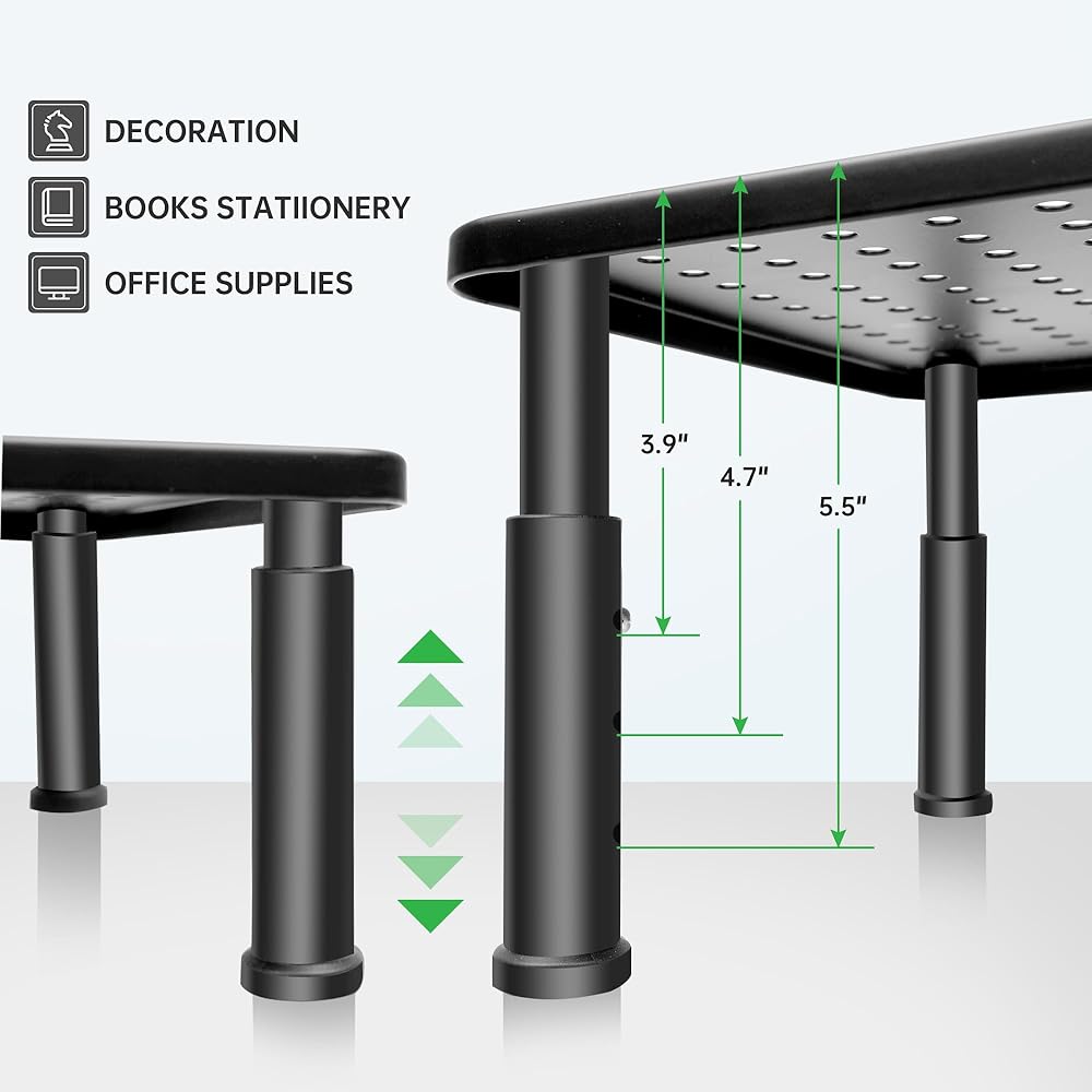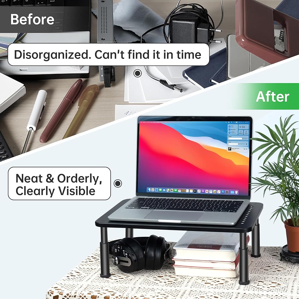 【عزز إحساسك بالسعادة】يأتي حامل الكمبيوتر مزودًا بـ 3 ارتفاعات قابلة للتعديل، مما يوفر لك مساحة عمل أكبر. يمكنك تنظيم وترتيب جميع مستلزماتك المكتبية أو وحدات التخزين المنزلية بشكل أفضل مع سهولة الوصول إليها وقتما تشاء.