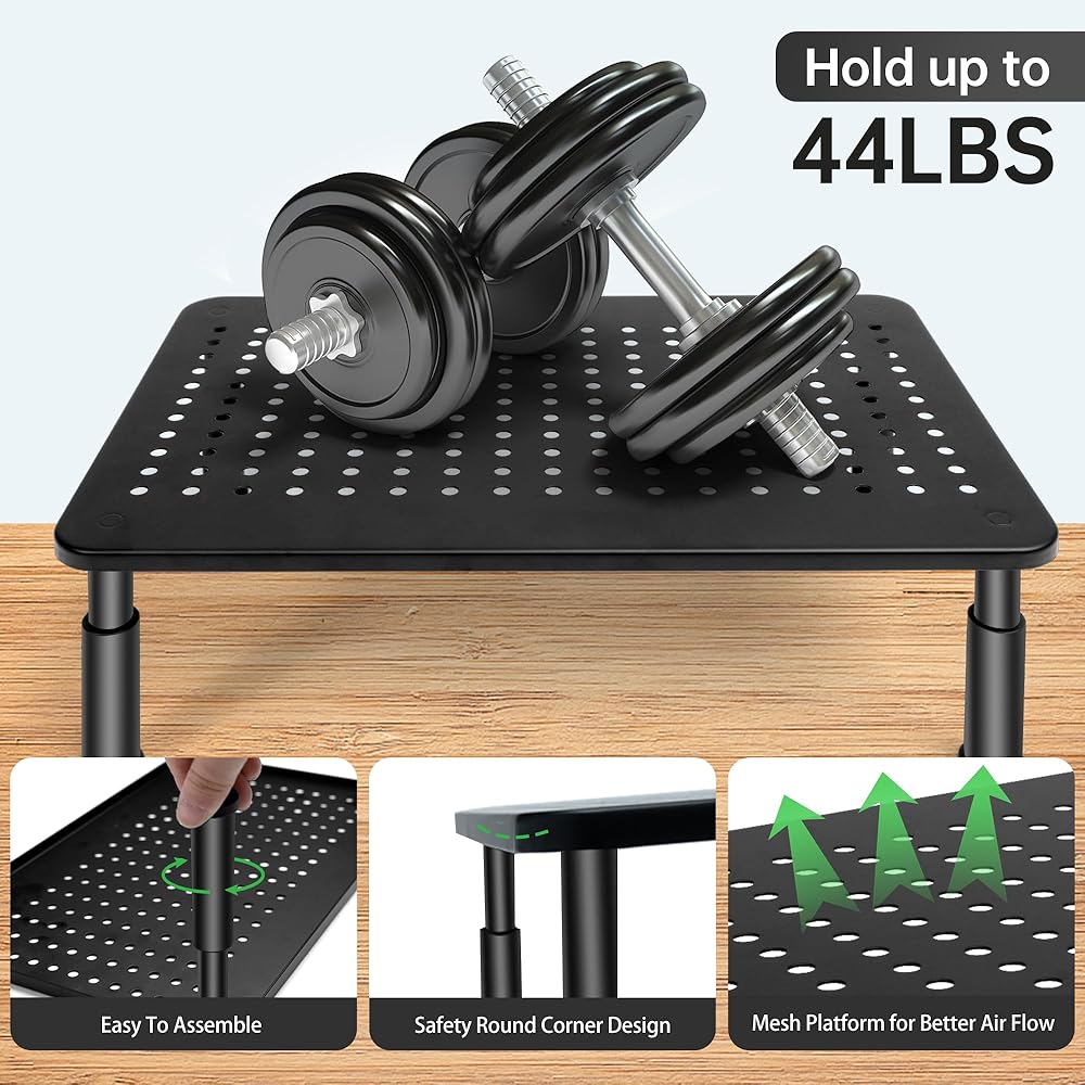 【قوي وثبات】حامل شاشة الكمبيوتر الخاص بنا للمكتب مصنوع من مواد عالية الجودة لضمان ثباته ومتانته. مع أقصى وزن يصل إلى 44 رطل، يمكنك وضع الشاشة بثقة أعلى الحامل، وسوف تدعم وتحمي معداتك بشكل موثوق.