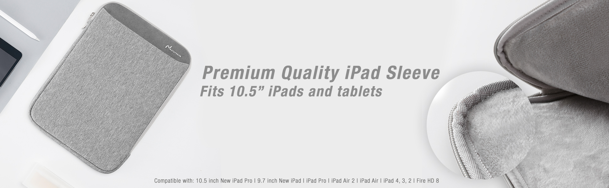 جراب آيباد برو 11 2018 جديد، Nacuwa 9.7-10.5 بوصة جراب تابلت متوافق مع آيباد إير / إير 2، آيباد 1/2/3/4، آيباد ميني، جالاكسي آيباد، مناسب لأقلام ابل ولوحة مفاتيح ذكية مع جيب رمادي