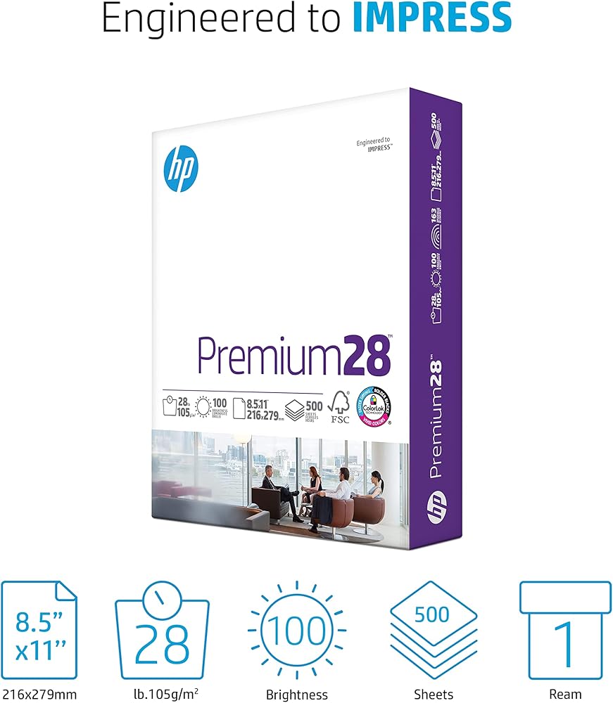 تعد HP Papers خطًا متميزًا من ورق الطباعة غير المطلي الذي تم تحسينه لتوفير أداء فائق لورق الطباعة عند استخدامه مع أجهزة ومستلزمات HP وفي جميع الماركات والموديلات الأخرى لمعدات الطباعة والنسخ. تم إطلاق ورق HP في عام 1996، ويتم تصنيعه وتسويقه حصريًا في جميع أنحاء العالم في أكثر من 75 دولة بواسطة شركة International Paper، وهي شركة رائدة معترف بها عالميًا في المنتجات الورقية، بموجب ترخيص من شركة Hewlett-Packard. مع مجموعة متنوعة من المنتجات المصممة لدعم مجموعة واسعة من تطبيقات الطباعة، بدءًا من النسخ اليومية وحتى العروض التقديمية بالألوان الكاملة، يمكنك التأكد من أداء طباعة متسق وعالي الجودة في كل مرة. ورق HP Premium28 عبارة عن ورق ثقيل الوزن وفائق النعومة يبلغ وزنه 28 رطلاً وهو أكثر سطوعًا (100 ساطع) وأكثر بياضًا (163 بياضًا) من الورق العادي. يعمل HP Premium28 على تمكين الطابعات من إنتاج الألوان الأكثر جرأة والأكثر ثراءً عند طباعة مستندات كاملة الألوان لإثارة إعجابك. تم تصميم ورق HP Premium28 باستخدام تقنية ColorLok، مما يوفر ألوانًا أكثر سطوعًا وألوانًا سوداء أكثر جرأة للحصول على تقارير رائعة المظهر ومستندات أعمال احترافية. يتوفر HP Premium28 في ورق بحجم 8.5 × 11 حرفًا محسّنًا للطباعة بالألوان الكاملة في جميع طابعات وناسخات الحبر والليزر.