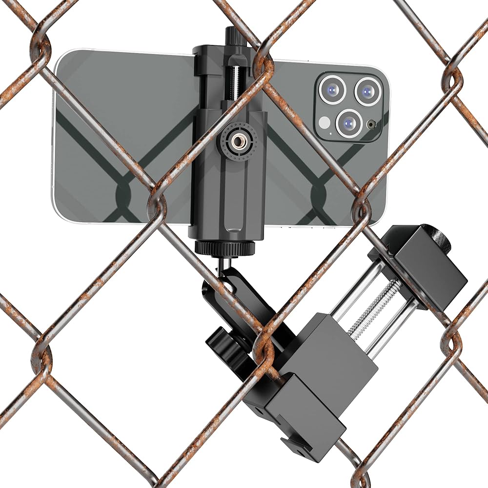 آمن: بفضل التثبيت الآمن، سيحافظ حامل السياج هذا على الكاميرا أو الهاتف الخاص بك آمنًا ومستقرًا للحصول على اللقطة المثالية. حماية جهازك في مواجهة الكرات الكريهة