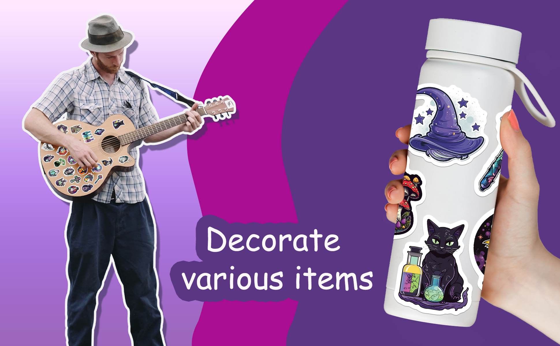 سهلة الاستخدام: ملصقات الفينيل الساحرة سهلة الاستخدام للغاية، تلتصق جيدًا بزجاجات المياه والأكواب وأجهزة الكمبيوتر والنوافذ وسجلات القصاصات والنوت بوك وأكثر من ذلك، ولا تترك أي بقايا عندما تحتاج إلى تقشيرها.