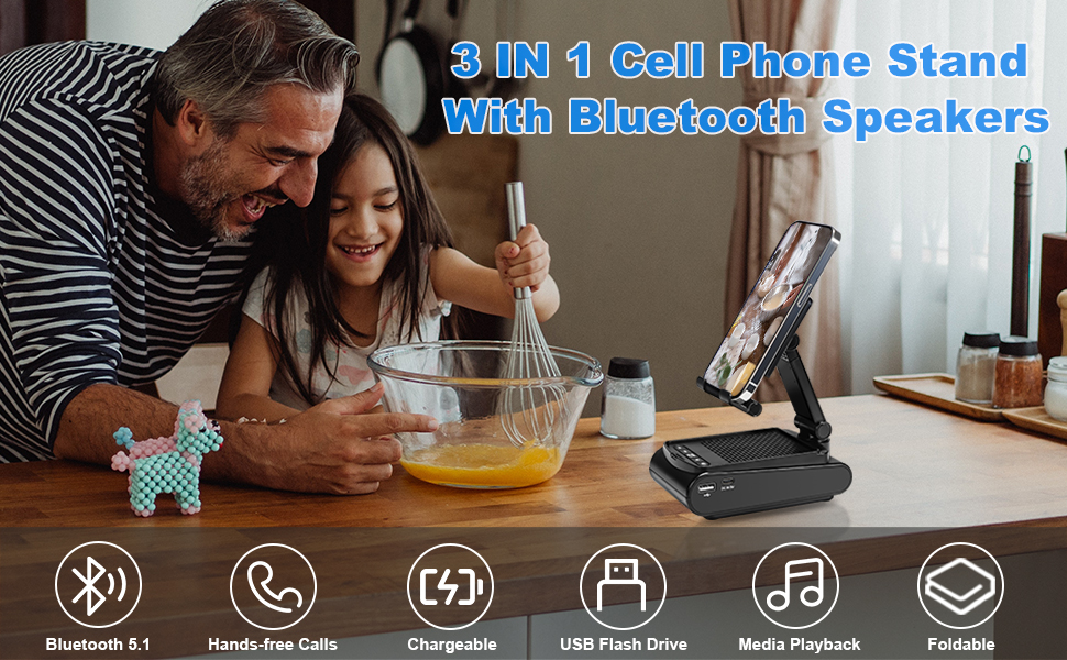 حامل الهاتف الخلوي من السيليكون المضاد للانزلاق: الجزء الخلفي والجزء السفلي من حامل الهاتف الخلوي هذا مع مكبر صوت بلوتوث 5.1 مغطى بالكامل بالسيليكون غير القابل للانزلاق، والذي يمكن أن يوفر أقصى قدر من الحماية لجهازك من أي خدوش وانزلاق.