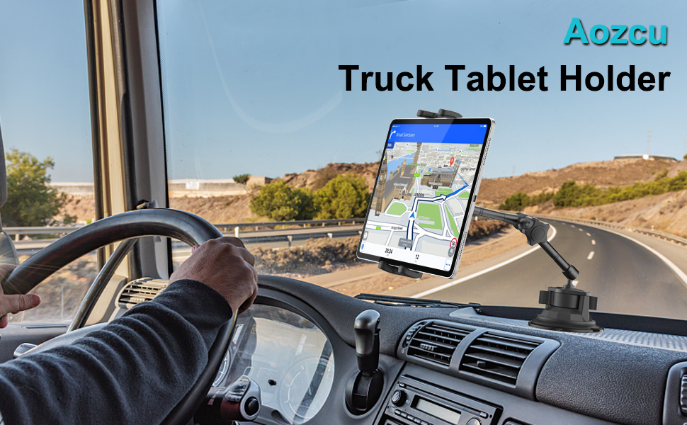 حامل تابلت Aozcu Truck، [شفط قوي للغاية] حامل تابلت عالي التحمل لشبه شاحنة/بيك اب/شاحنة/سيارات الدفع الرباعي، حامل لوحة القيادة للزجاج الأمامي للسيارة لجهاز iPad Pro Air Mini، Galaxy Tab، Z Fold، أجهزة 4-12.9 بوصة