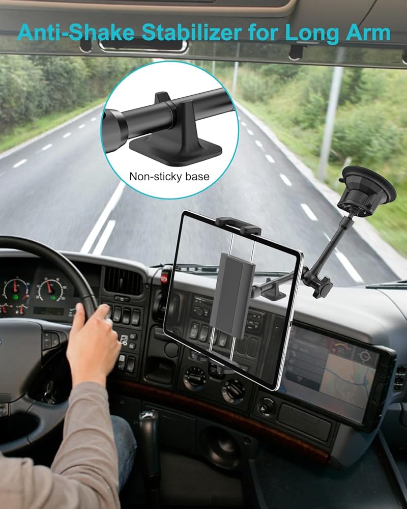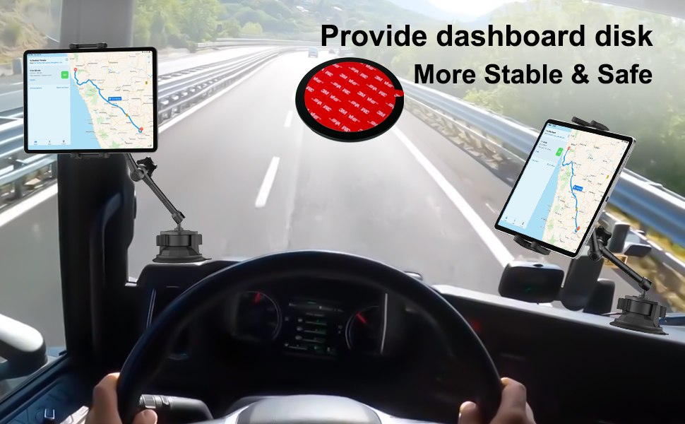 【Driver's Good Helper】Windshield dashboard tablet holder is ideal for drivers to view navigation, and professional drivers to handle remote information to better serve long-distance transportation work. Windshield dash tablet holder not only suitable for semi-truck/ flat truck/ box truck/ dump truck/ van/ SUV/ MPV/ bus/ excavator/ RV/ camper/ off-road vehicle, but also for commercial fleet vehicles/ transport truck/ tank truck/ warehouse truck/ aviation/ agricultural transportation.