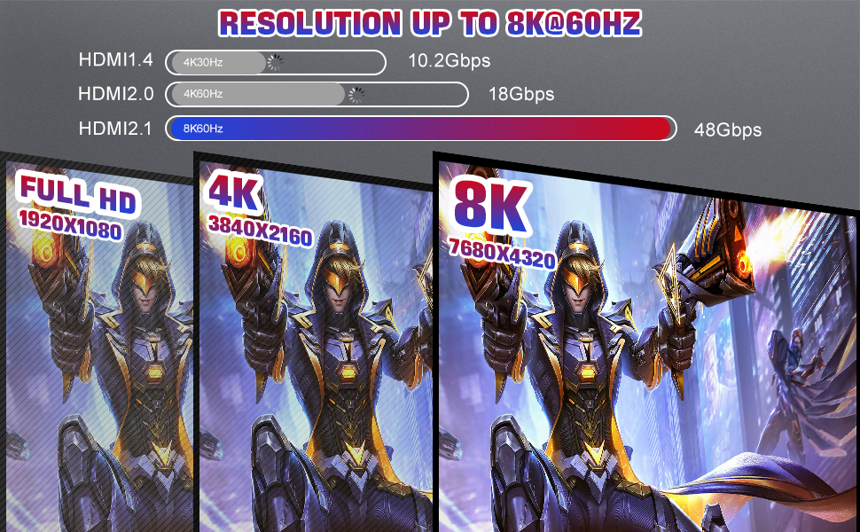🎮شاشة عرض عالية الدقة 8K@60 هرتز و4K@120 هرتز: يدعم مفتاح HDMI 2.1 المصنوع من الألومنيوم مرئيات مذهلة عالية الدقة تصل إلى 8K@60 هرتز و4K@120 هرتز. بالإضافة إلى ذلك، فهو يدعم بشكل كامل الميزات المتقدمة مثل CEC وVRR وHDR10 وDolby Atmos وARC، مما يعزز تجربتك السمعية والبصرية. عند تبديل إشارة HDMI، يمكنك الاستمتاع بالصور والصوت عالي الجودة دون انقطاع دون أي تأخير.