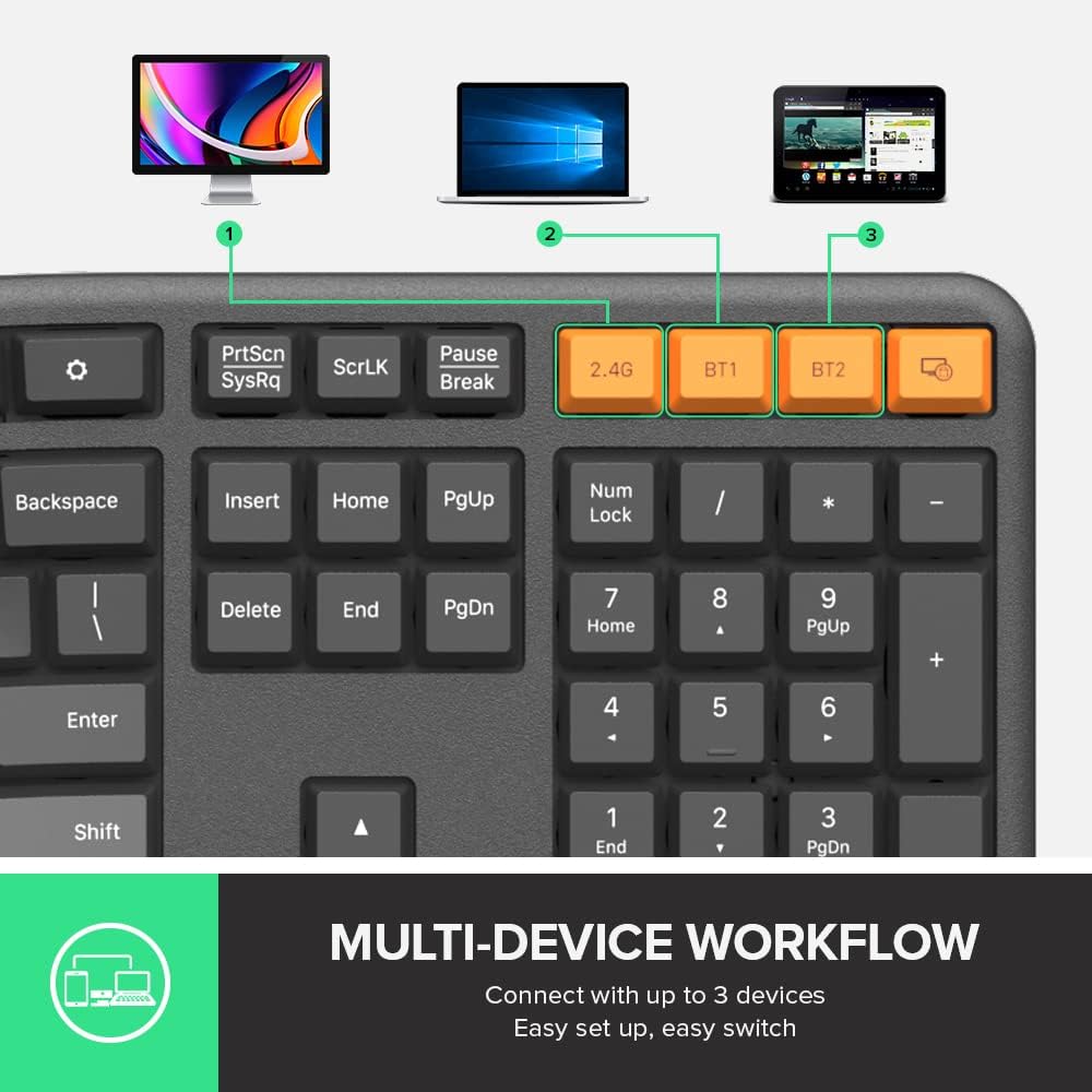 [التبديل بسهولة بين 3 أجهزة] تواصل مع 2.4G لاسلكي أو بلوتوث 5.0، ثم استخدمه مع ما يصل إلى 3 أجهزة لسهولة تعدد المهام. متوافق مع أنظمة التشغيل Windows وMac وAndroid والمزيد.