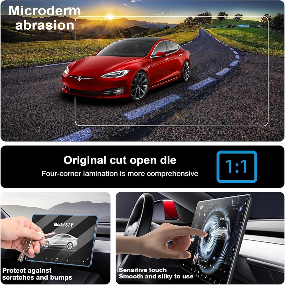 • التطبيق العملي: تم تصميم واقي الشاشة طراز Tesla Model y لشاشة اللمس المركزية Tesla Model 3/Y، ويتناسب بسلاسة مع الشاشة الأصلية، ويستجيب للمس، ويضمن الوصول بدون متاعب، ولن ينخلع حتى أثناء القيادة السريعة أو الاستخدام الطويل. إنه يتناسب تمامًا مع التصميم الداخلي وهو غير مرئي تقريبًا.