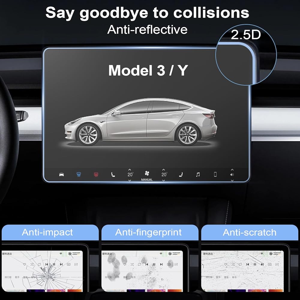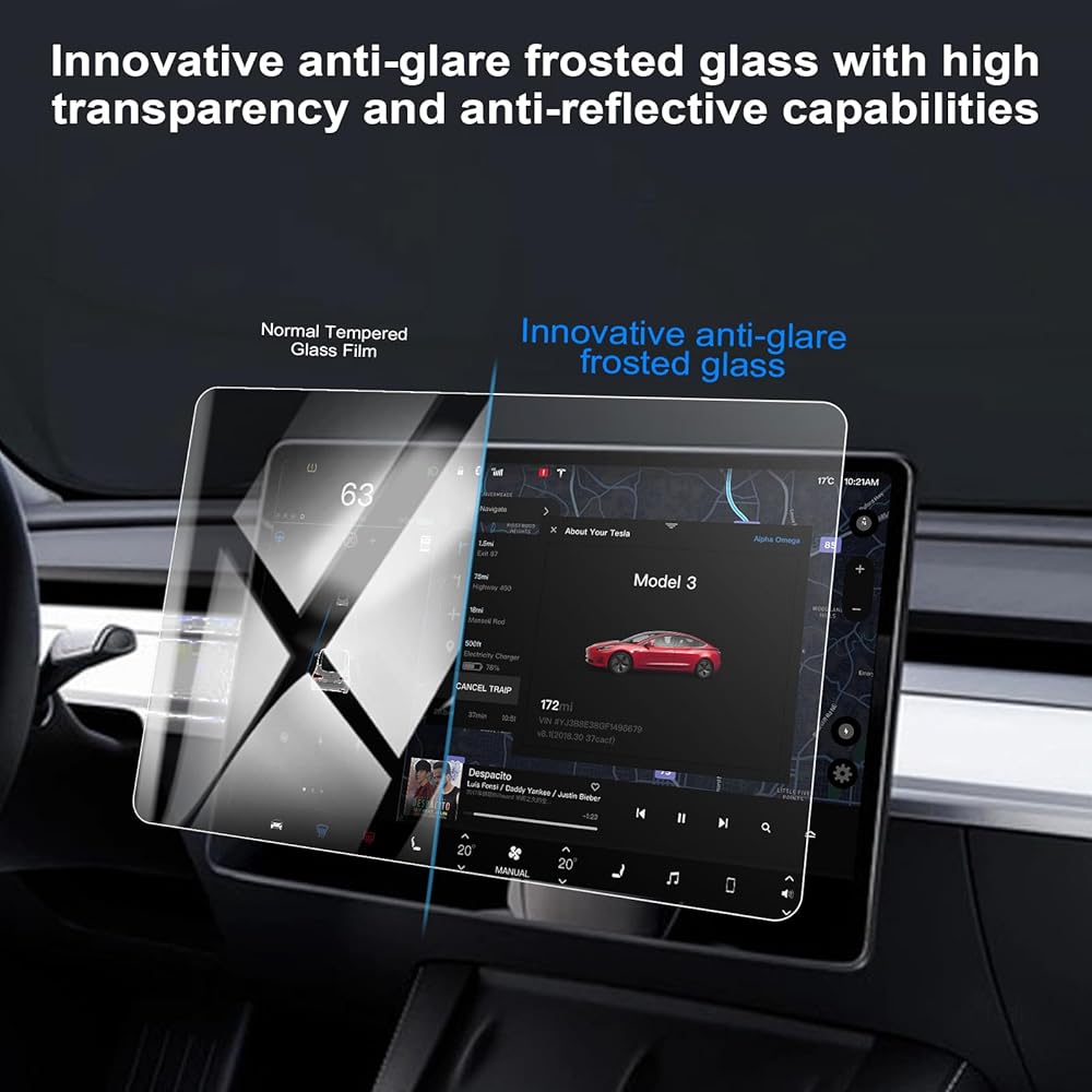 • [مضاد للوهج/ مضاد لبصمات الأصابع]: واقي شاشة Tesla Model 3/Y مع طلاء مقاوم للزيوت مطلي بالكهرباء، لن تترك بصمات الأصابع آثارًا، ويحافظ دائمًا على الوضوح العالي للشاشة الأصلية ويقلل من احتمالية وقوع الحوادث.