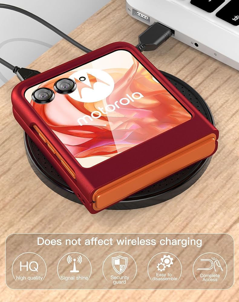 • 【التوافق: مصمم حصريًا لهاتف Motorola Razr 2023 فقط، [لا يناسب Razr Plus 2023]. فتحات دقيقة تتيح الوصول الكامل إلى جميع الميزات وأدوات التحكم (الكاميرا، مستشعر بصمات الأصابع، الأزرار، المنافذ، الشحن اللاسلكي، إلخ).