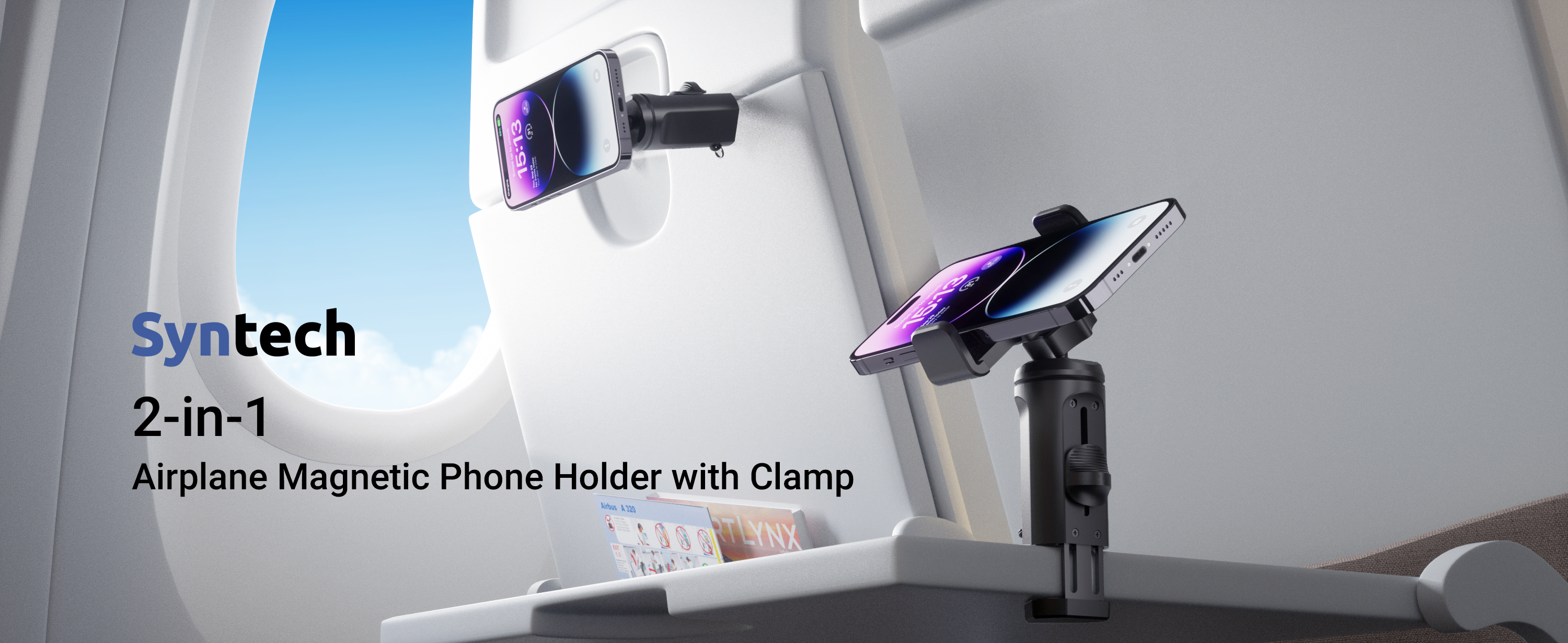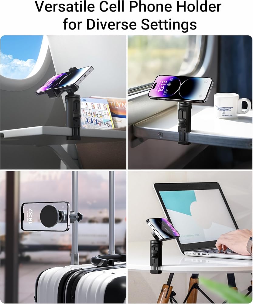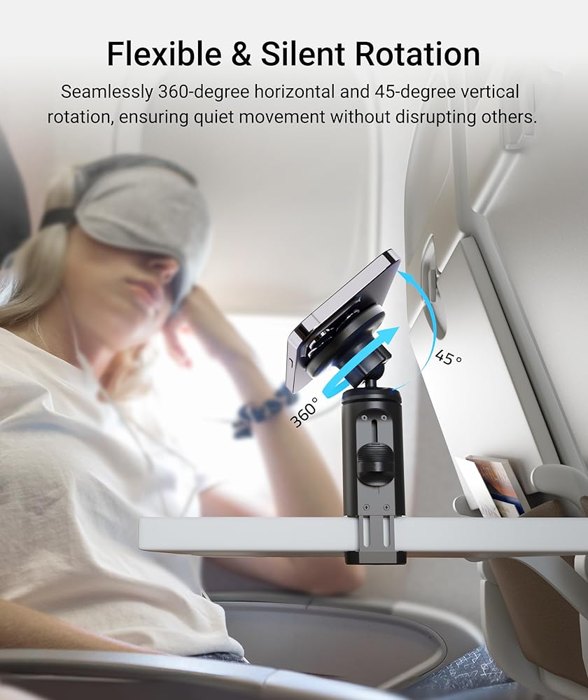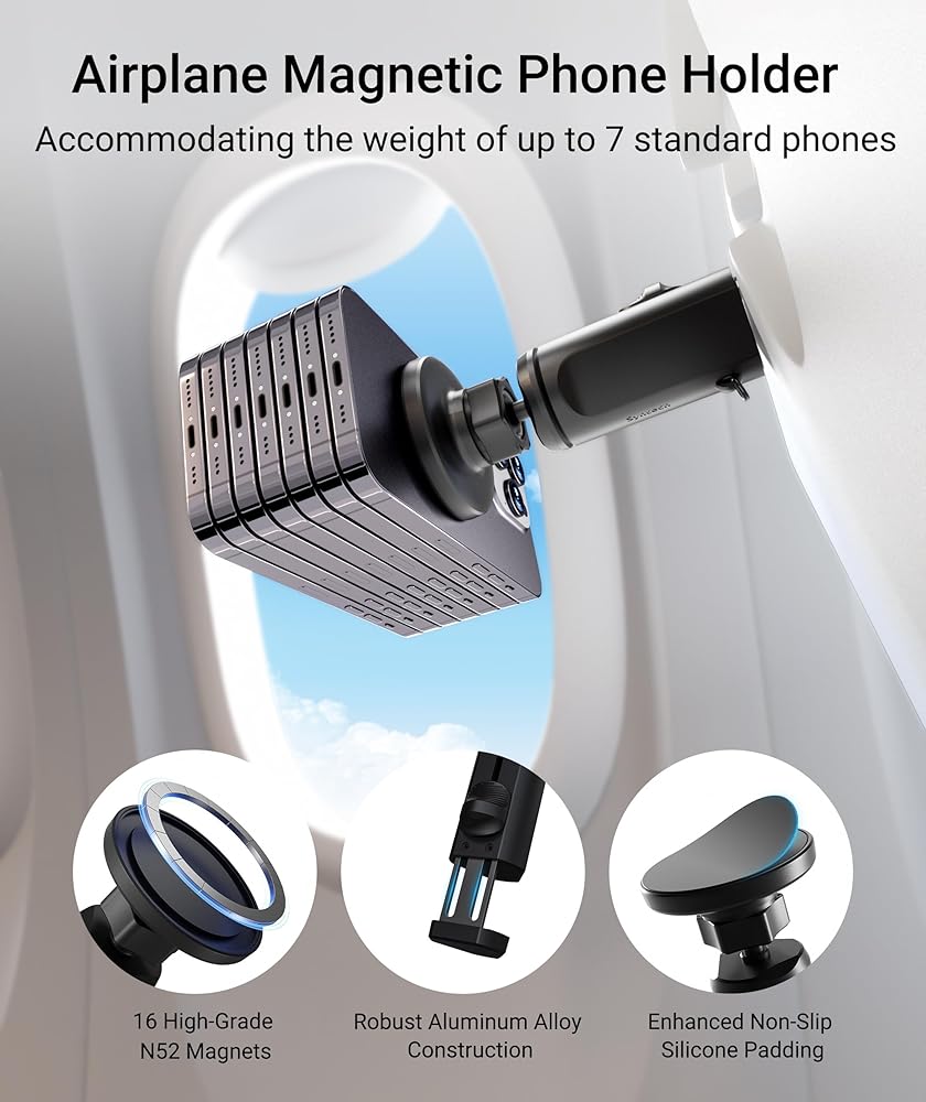 حامل هاتف مغناطيسي 2 في 1 من Syntech مزود بمشبك، حامل هاتف عالمي أثناء الطيران بدون استخدام اليدين مع دوران مزدوج متعدد الاتجاهات 360 درجة، ملحق أساسيات السفر للطيران