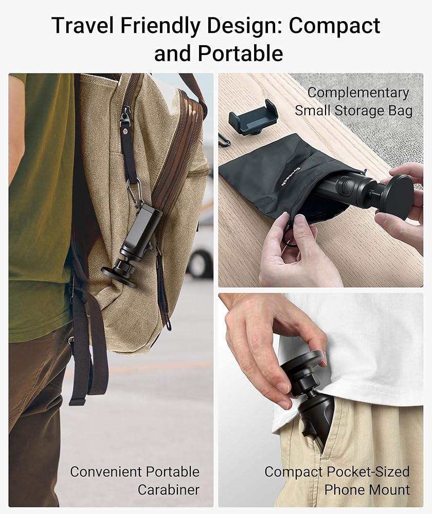 ✈️【قابلية نقل محسنة】تم تصميم حامل الهاتف على متن الطائرة لدينا بدقة ليكون خفيف الوزن وصغير الحجم بشكل استثنائي لزيادة راحة السفر. يتيح لك هذا التصميم حملها دون أي عبء. علاوة على ذلك، فإن حلقة التثبيت المصاحبة تربط الحامل بسهولة بحقيبة الظهر أو الحزام للوصول السريع. تعمل حقيبة التخزين المصنوعة بعناية على تنظيم حامل الهاتف وملحقاته بكفاءة، مما يوفر مساحة أكبر في حقيبة ظهرك!