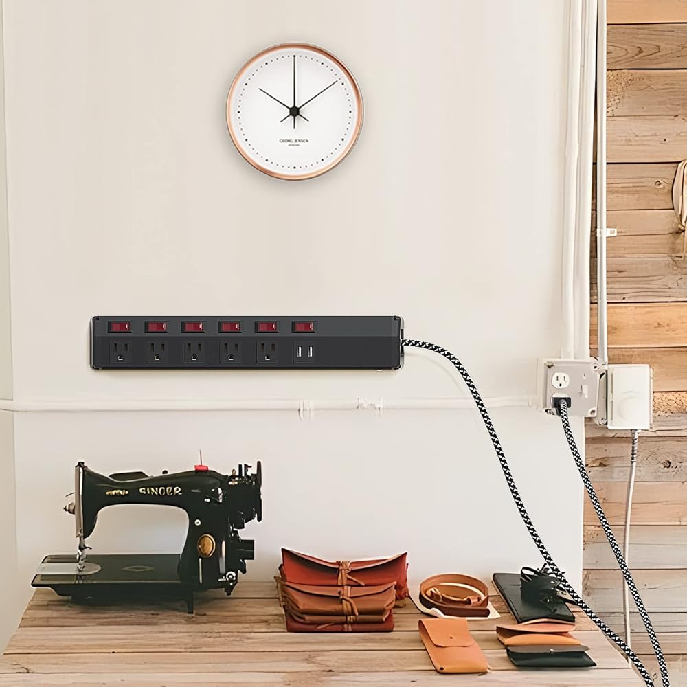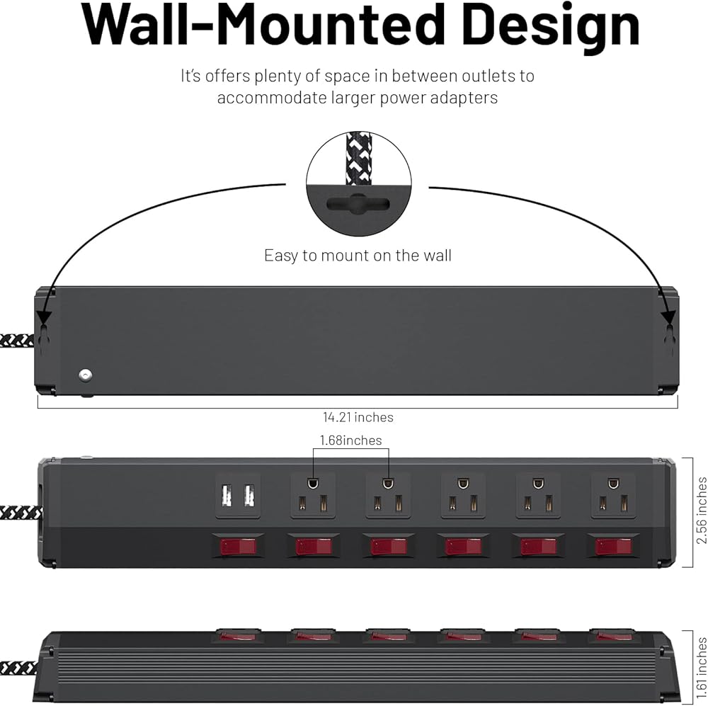 【تصميم موفر للمساحة】: التصميم المدمج لشريط الطاقة هذا يجعل من السهل ملاءمته على مكتبك، أو المنضدة، أو أي مساحة صغيرة أخرى، بينما يوفر سلك التمديد بطول 6 أقدام مرونة إضافية.