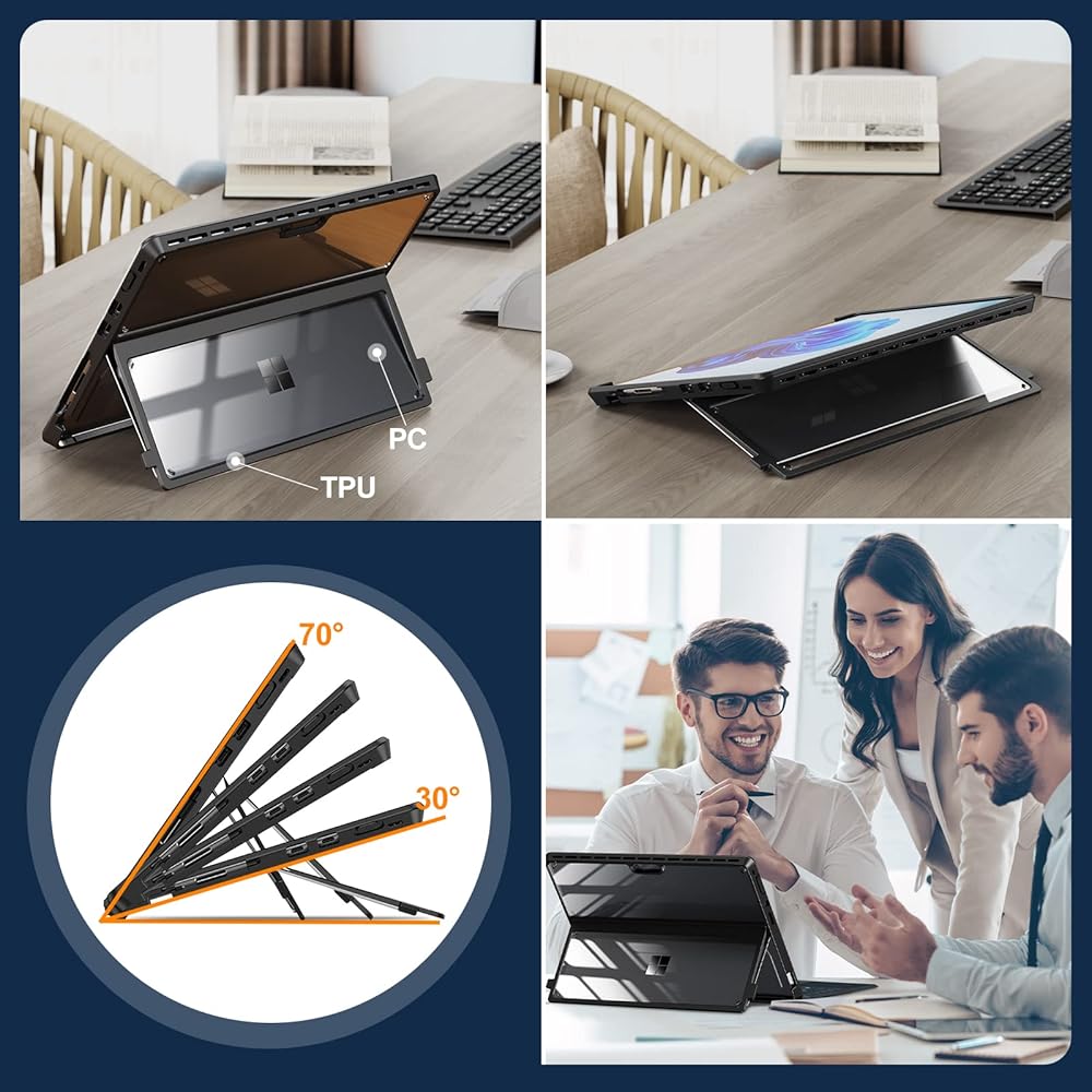 • 💎【مسند مدمج متعدد الزوايا ومحمي للسطح】يسمح بتعديل مسند السطح المدمج على زوايا مختلفة لرؤية أو كتابة أفضل دون إزالة الجراب. وأضف طبقة حماية للسطح المدمج، فلا داعي للقلق بشأن مشكلة خدش المسند.