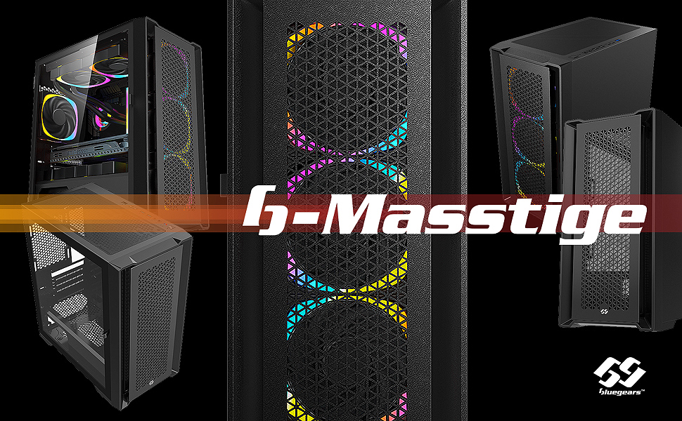 حافظة كمبيوتر العاب بي ماستيج مايكرو ايه تي اكس من بي جيرز مع نظام تدفق هواء ضخم من الزجاج المقسى بجانب الباب الدوار ومنفذ USB نوع C ومنفذ USB 3.0 × 2 (تباع المراوح بشكل منفصل)