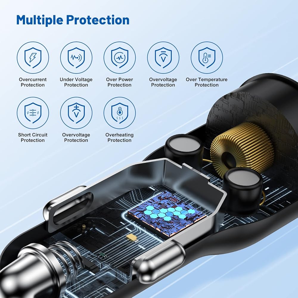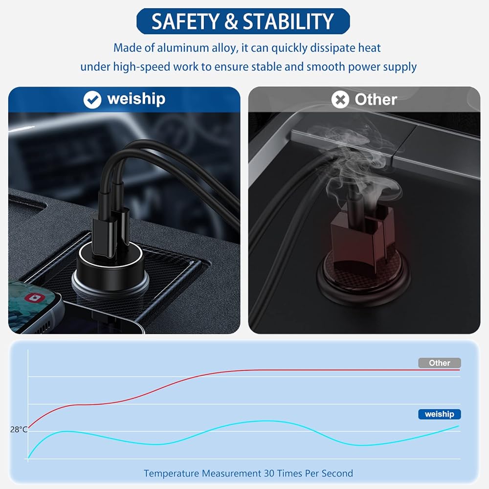 ✅[شهادة السلامة]: شاحن سيارة مصنوع من مادة ABS+PC المقاومة للحريق، ومعتمد من RoHS وCE وFCC، وحماية متعددة من الحرارة الزائدة والتيار الزائد، والشحن الزائد والدائرة القصيرة، وسيتوقف الشحن تلقائيًا عندما تكون البطارية مشحونة بالكامل.