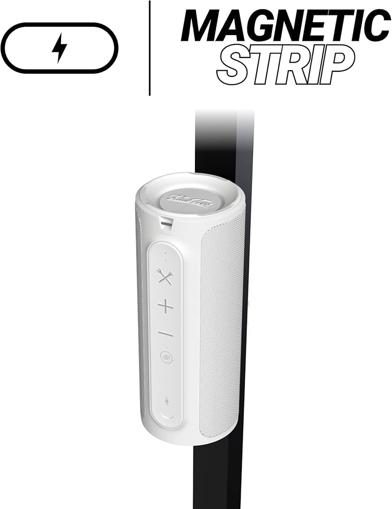 مغناطيس قوي للغاية - قم بتوصيل "اللاعب" بعربة الجولف أو الباب الخلفي أو صندوق الأدوات أو القارب أو أي سطح معدني آخر واستمتع بالموسيقى طوال اليوم. لا توجد مشكلة في عربة التسوق، تحقق من "المحور المغناطيسي" الخاص بنا لربط إكسسواراتك المغناطيسية المفضلة مباشرة بحقيبة الجولف الخاصة بك.