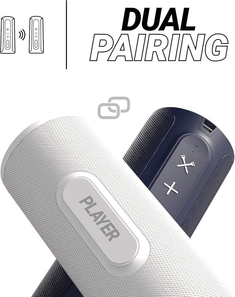 ارتقِ بمستوى لعبتك - سيأخذ "اللاعب" تجربة الجولف الخاصة بك إلى المستوى التالي. يتميز بمكبر صوت داخلي 20 نواة للحصول على صوت فائق لمدة تصل إلى 12 ساعة فما فوق. احصل على "لاعب" ثانٍ وقم بتوصيل الاثنين بسلاسة للحصول على تعزيز إضافي في الصوت ومحيط الستيريو.