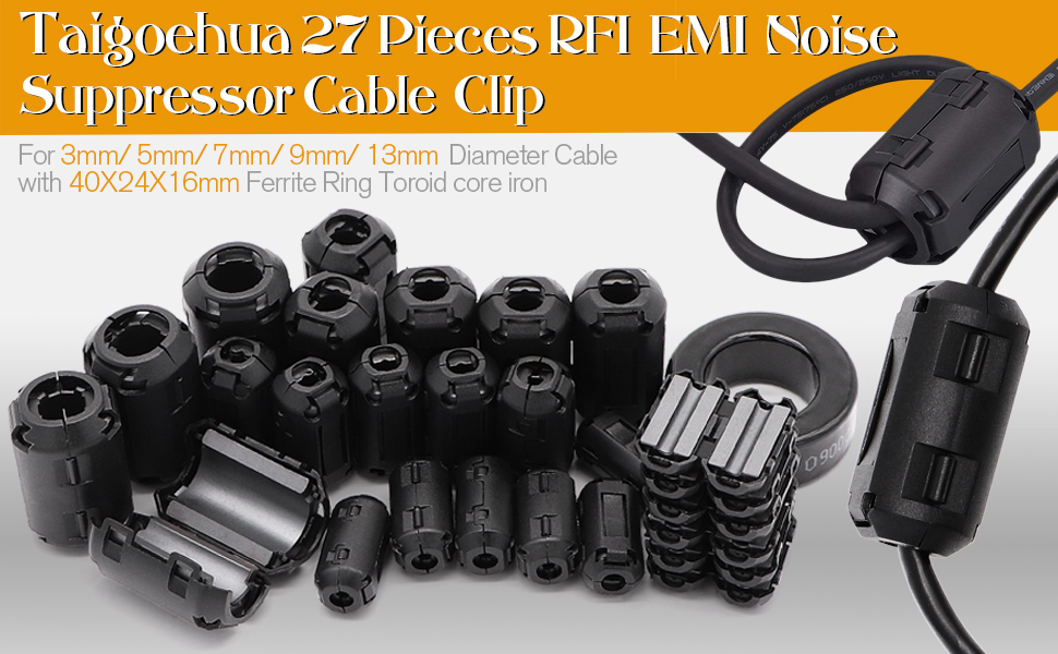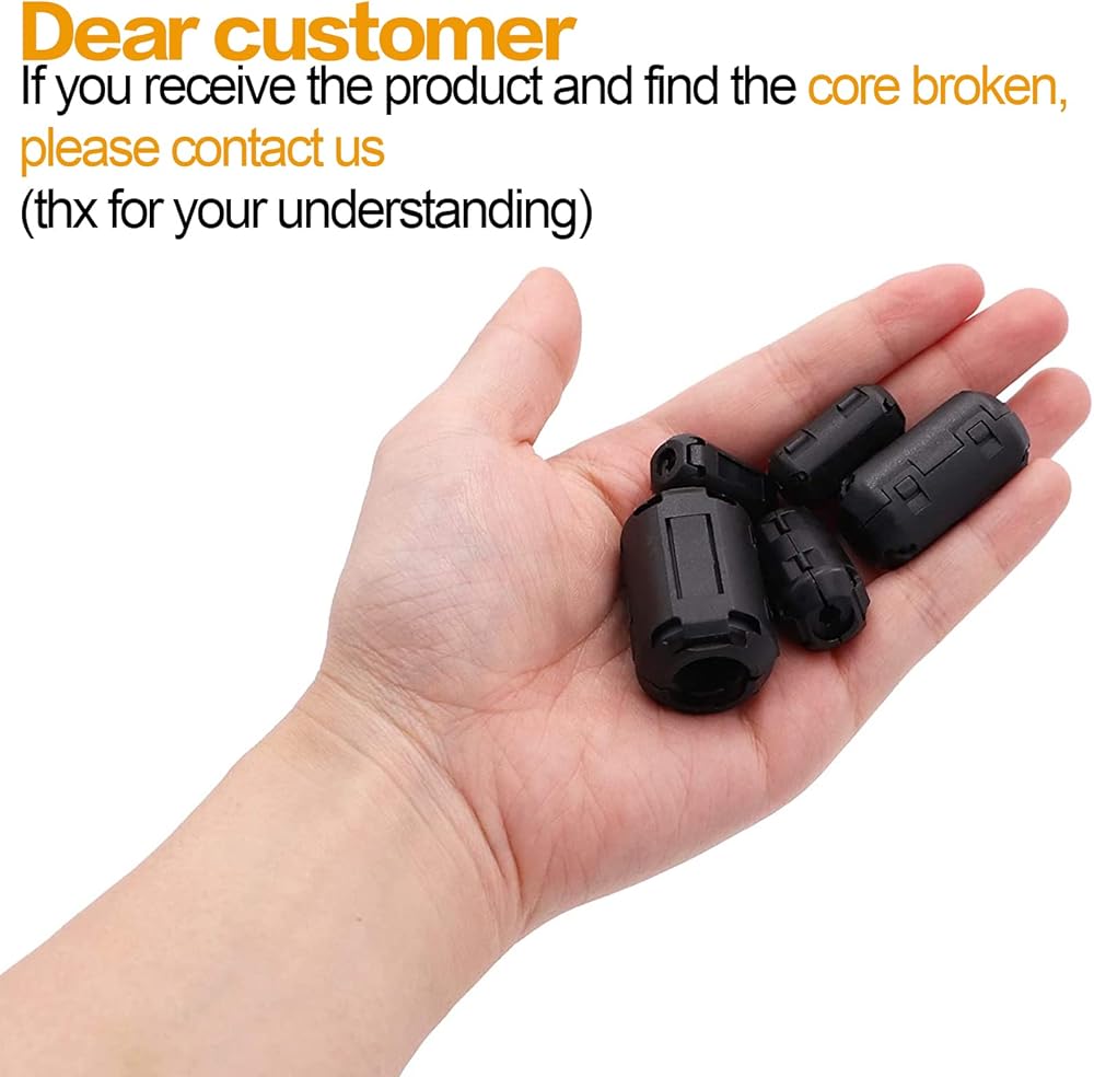 تتضمن العبوة: 26 قطعة من مشابك كابلات الفريت مع قطعة واحدة من الحديد الحلقي الحلقي الفريت. (إذا وجدت نواة مكسورة، يرجى الاتصال بنا)