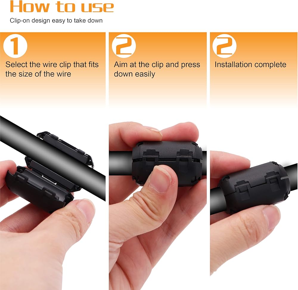 ما عليك سوى تثبيته وستحصل على إشارة أكثر وضوحًا ونقل بيانات أسرع. هذا النوع من مانع الضوضاء مع مشابك كبس مزدوجة، حتى تتمكن من تقليل التداخل الكهربائي المغناطيسي وتحسين سلامة الإشارة.