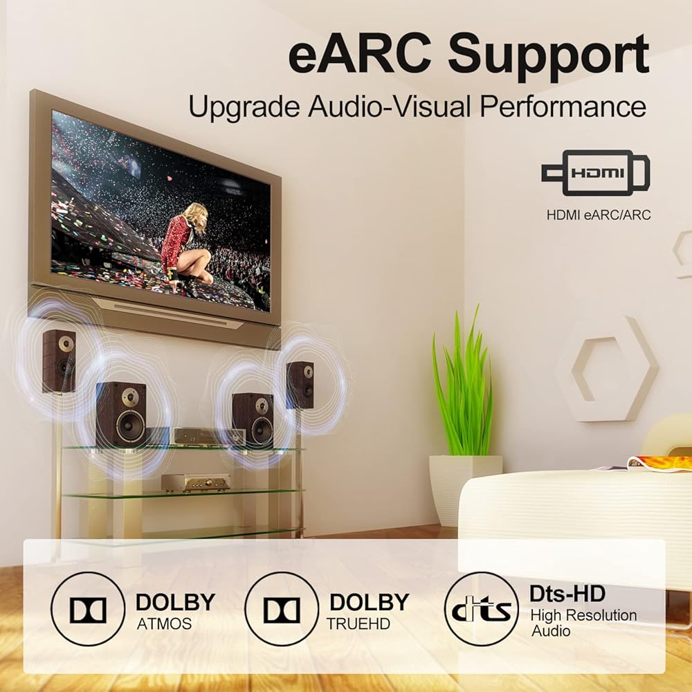 [دقة صوت مثالية] تدعم كابلات AUDIANO HDMI حقًا HD Dolby 7.1 وDolby Atmos لتعزيز كل لحظة من العمق والتفاصيل والسطوع من خلال معدل التحديث المتغير (VRR)، ونقل الإطار السريع، وقناة إرجاع الصوت المحسنة (eARC). يرجى ملاحظة أنه للاستمتاع بتجربة Dolby Vision بشكل كامل، ستحتاج إلى الارتباط في سلسلة العرض لتكون متوافقة مع Dolby Vision عبر أجهزة البث إلى جهاز استقبال الصوت/الفيديو الخاص بك.