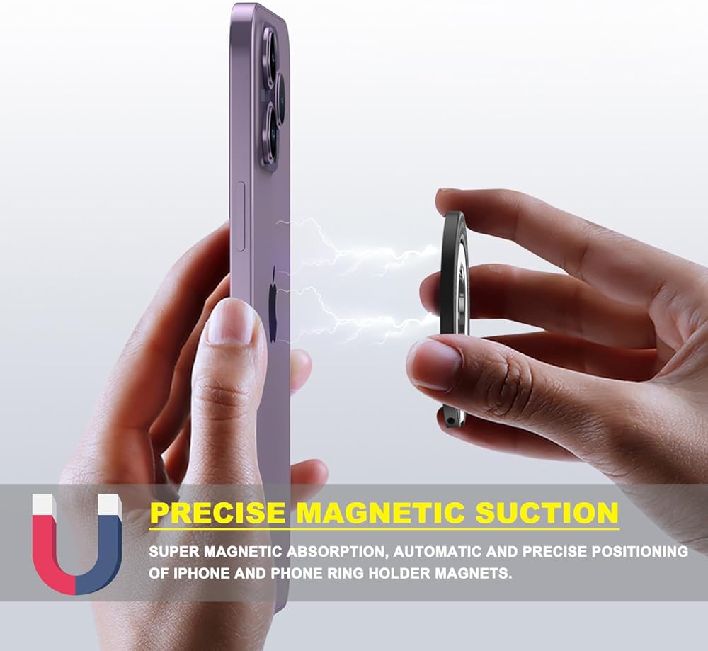 🧲(توافق واسع): حامل حلقة هاتف مغناطيسي JCHIEN Magsafe متوافق مع iPhone 14، iPhone 14 Plus، iPhone 14 Pro، iPhone 14 Pro Max، iPhone 13، iPhone 13 mini، iPhone 13 Pro، iPhone 13 Pro Max، iPhone 12، iPhone 12 mini، وiPhone 12 Pro، وiPhone 12 Pro Max، وحافظة شفافة من magsafe، وحافظة جلدية من magsafe، وحافظة من السيليكون من magsafe. ⚠️لاستخدام حافظة هاتف غير مغناطيسية، يرجى تركيب حلقة معدنية لإضافة وظيفة مغناطيسية.