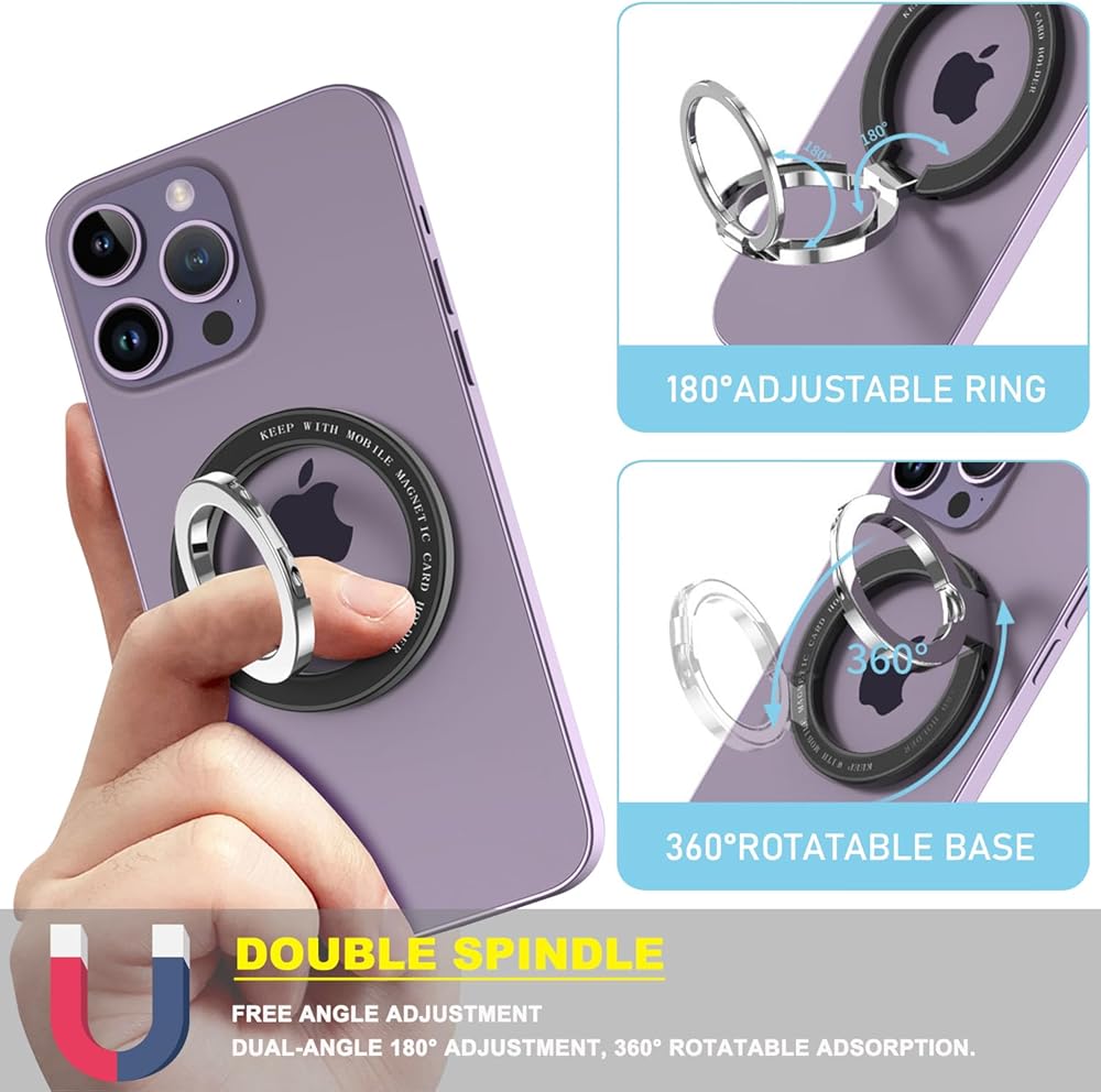 🧲【تصميم مزدوج متعدد الوظائف】يتميز حامل حلقة الهاتف المغناطيسي Magsafe بقاعدة دوارة 360 درجة وحلقة مزدوجة قابلة للطي بزاوية 180 درجة، وتعديل زاوية حرة، واختراق حد زاوية الدعامة التقليدية. حرر يديك، وتجعلك أكثر راحة في القراءة/مشاهدة مقاطع الفيديو، وما إلى ذلك. تم اختبار حامل حلقة الهاتف المغناطيسي من ماج سيف لتحمل 10,000 طيات دون ارتخاء.