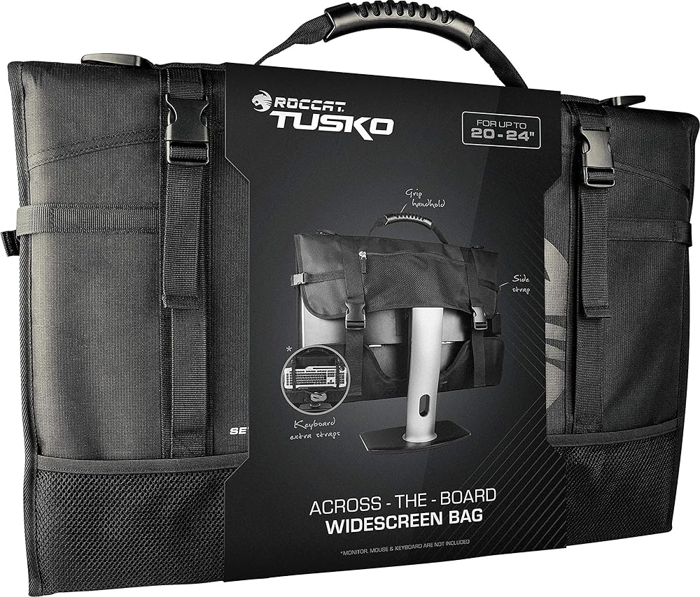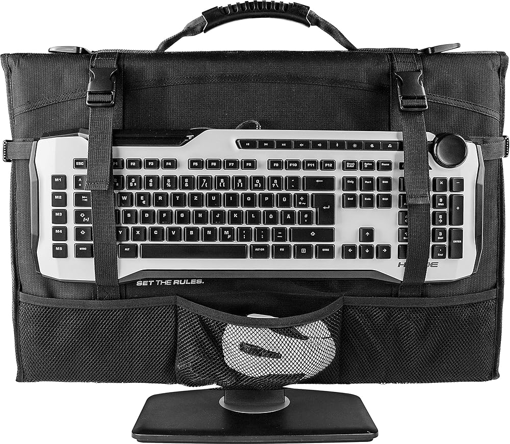 هل أنت لاعب أثناء التنقل، أو تحتاج ببساطة إلى حماية جيدة للمعدات؟ إن روكات tusko هو ما تحتاجه. يمكنك الوصول إلى حفلة LAN القادمة الخاصة بك بشكل آمن وآمن. حقيبة الشاشة العريضة من توسكو ليست كبيرة بما يكفي لاستيعاب شاشتك العريضة مقاس 20-24 انش؛ كما أنها تحتوي على مساحة كافية للوحة المفاتيح والماوس والملحقات. - حامل إضافي للوحة المفاتيح و4 مساحات تخزين إضافية لجميع ملحقات الكمبيوتر الخاصة بك - لوحة بلاستيكية صلبة مدمجة: لحماية محسنة بشكل فعال ضد الصدمات والأضرار - الراحة حتى آخر التفاصيل: خطافات كبس متينة عالية الجودة، حزام، قبضة ووسادة كتف آمنة أولاً مع توفير أعلى مستوى من الحماية. توفر اللوحة البلاستيكية الصلبة المدمجة حماية فعالة ضد الصدمات - كما أن الماء والأوساخ لا تواجه فرصة أيضًا. المادة الطاردة للماء، تتميز بخياطة عالية الجودة، مؤمنة معًا باستخدام خطافات المشبك ونظام كليب اند جو الذكي. ذكاء حتى آخر التفاصيل، يوفر توسكو حزام حمل مبطن بشكل مريح وقابل للإزالة، لجعل رحلات الألعاب الخاصة بك سهلة وسلسة قدر الإمكان. يضمن حامل الكيبورد الذكي ونظام كليب اند جو تعبئة معداتك بأمان وجاهزة للاستخدام.
