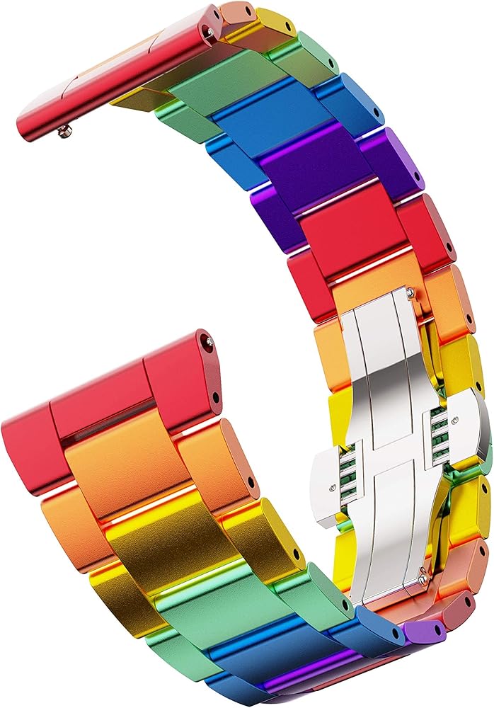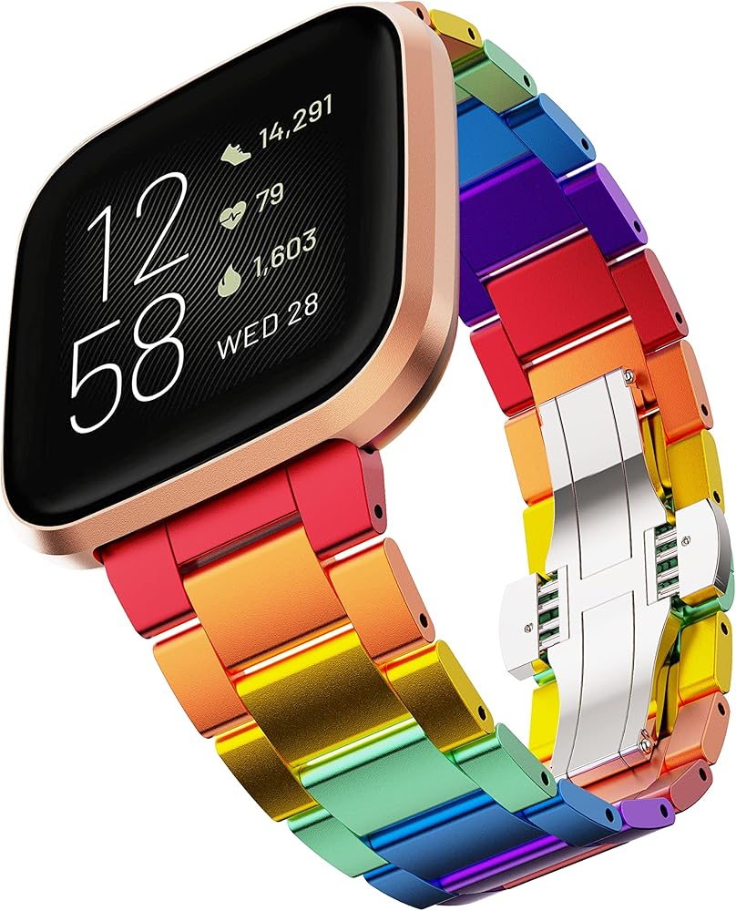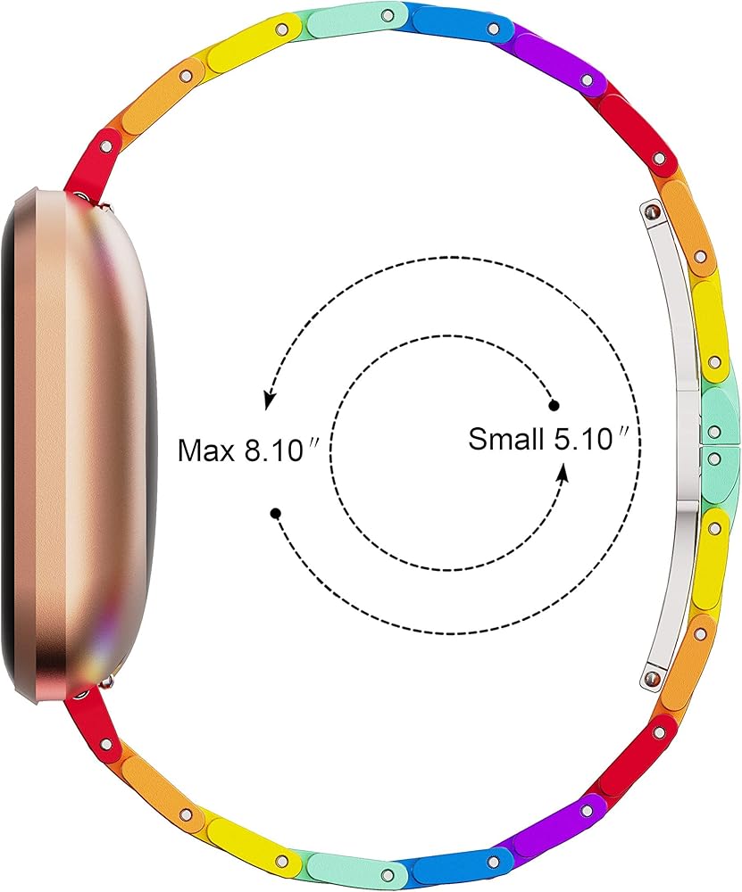 ❤ سوار معدني من الفولاذ المقاوم للصدأ بألوان قوس قزح: حرفية جديدة تتحد مع مادة الألومنيوم المعدنية عالية الجودة لجعل سوار ساعة فيتبيت أكثر ألوانًا، وليس من السهل أن يبهت. سوار الساعة هذا بألوان قوس قزح يكمل بالتأكيد خزانة ملابسك، وهو اختيار جيد لمختلف المناسبات، والعمل، والحفلات، المواعدة أو الحياة اليومية إلخ.