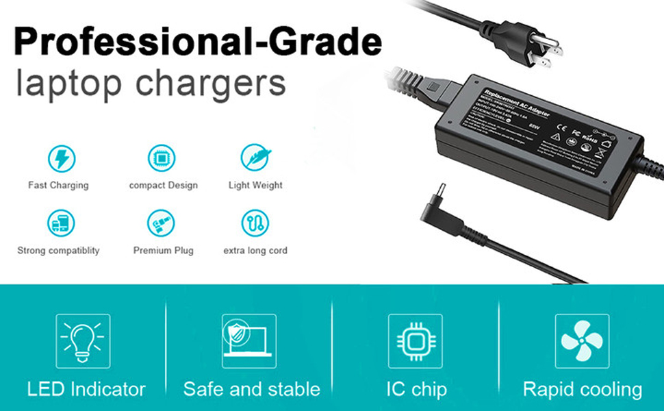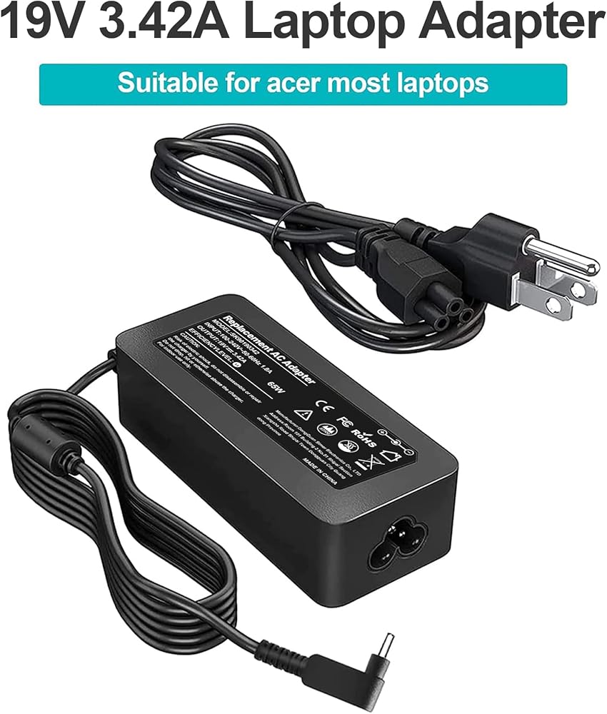 شاحن أيسر Pa-1450-26 متوافق مع شاحن أيسر أسباير a515-54 لشاحن أيسر a115-31-c0yl وشاحن أيسر كروم بوك C720، متضمن محول تيار متردد وسلك طاقة