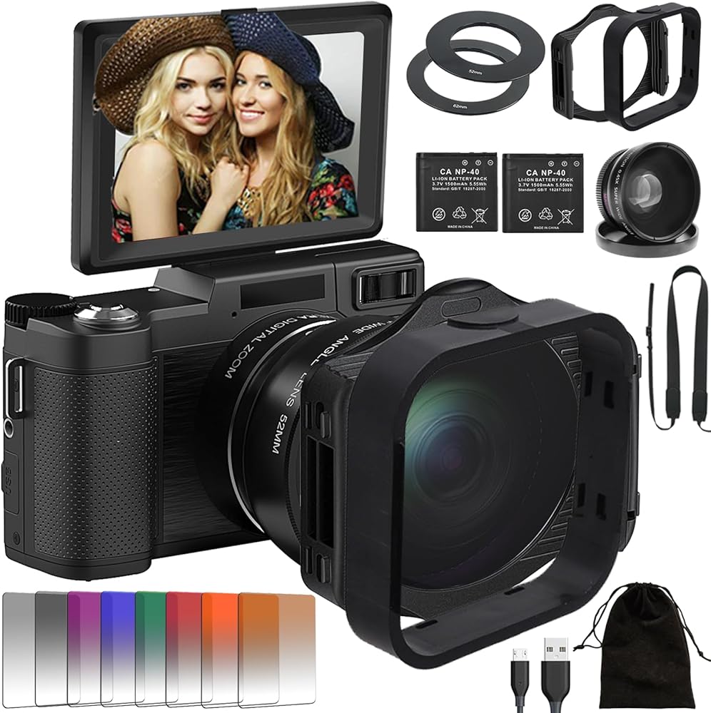 كاميرا رقمية بدقة 4K مع 8 مجموعات من فلاتر الألوان، وكاميرات بدقة 48 ميجابكسل للتصوير الفوتوغرافي لكاميرا تسجيل الفيديو لكاميرا التركيز التلقائي على YouTube وكاميرا التوجيه والتقاط مع شاشة قلاب وزاوية واسعة وعدسة ماكرو وبطاريات
