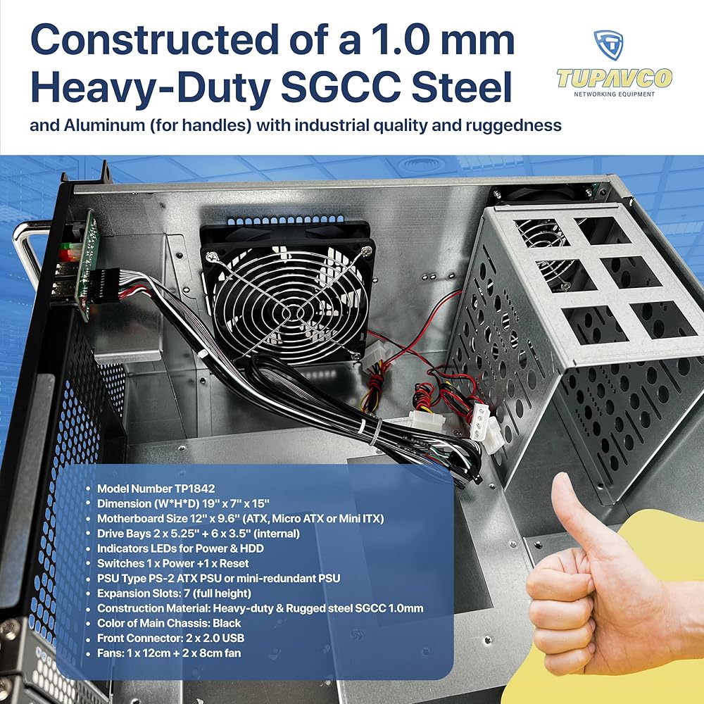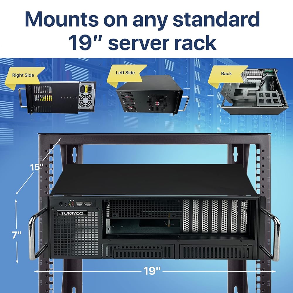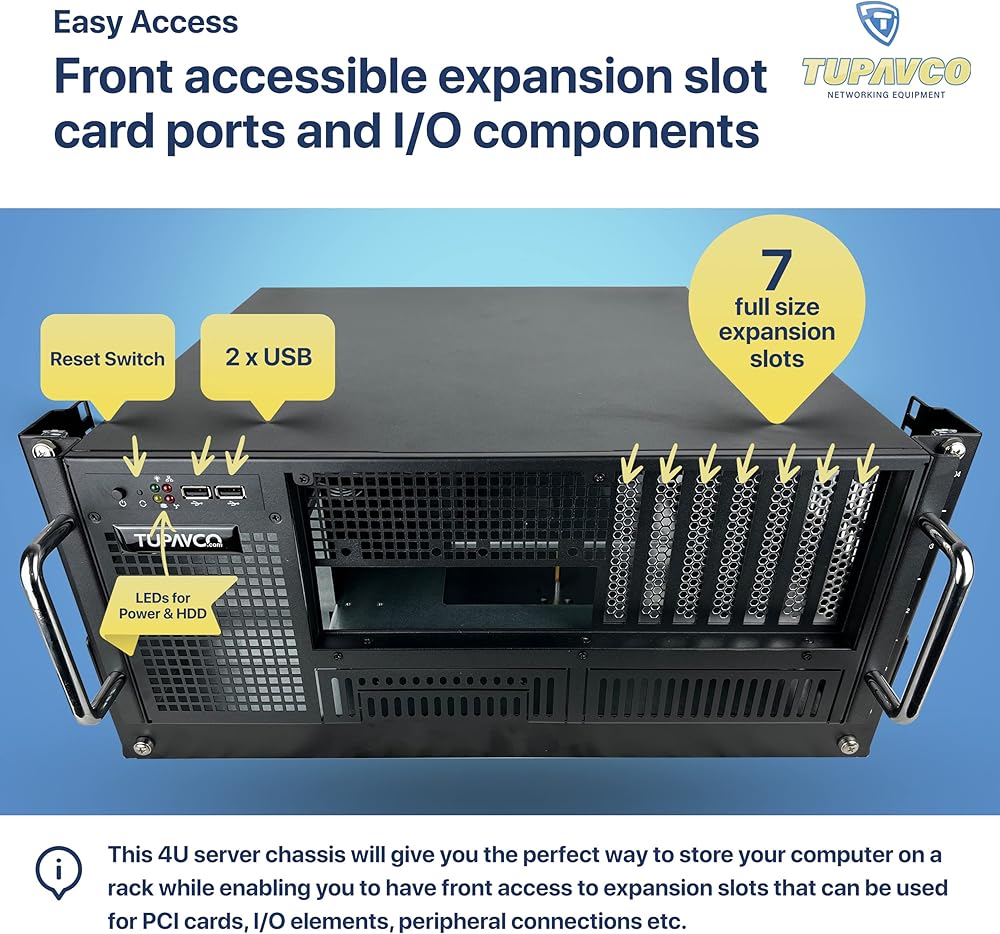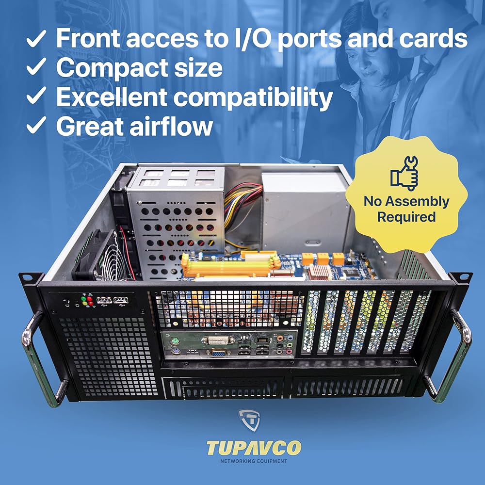 سيمنحك هيكل الخادم 4U هذا الطريقة المثالية لتخزين جهاز الكمبيوتر الخاص بك على الرف مع تمكينك من الوصول الأمامي إلى فتحات التوسيع التي يمكن استخدامها لبطاقات PCI وعناصر الإدخال/الإخراج والاتصالات الطرفية وما إلى ذلك. سيحمي الغلاف الأنيق المثبت على الرف الأعمال الداخلية للخادم الخاص بك بينما يكون متوافقًا مع أي رف خادم مقاس 19 انش ولا يشغل سوى عمق 15 انش على الرف الخاص بك.