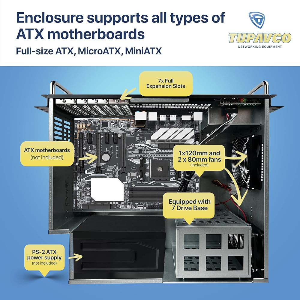 [متوافق] تدعم العلبة جميع أنواع اللوحات الأم ايه تي اكس (ايه تي اكس بالحجم الكامل، مايكرو ايه تي اكس، ميني ايه تي اكس) بالإضافة إلى مصدر طاقة PS-2 ATX أو وحدة إمداد الطاقة الصغيرة الزائدة (غير متضمنة)