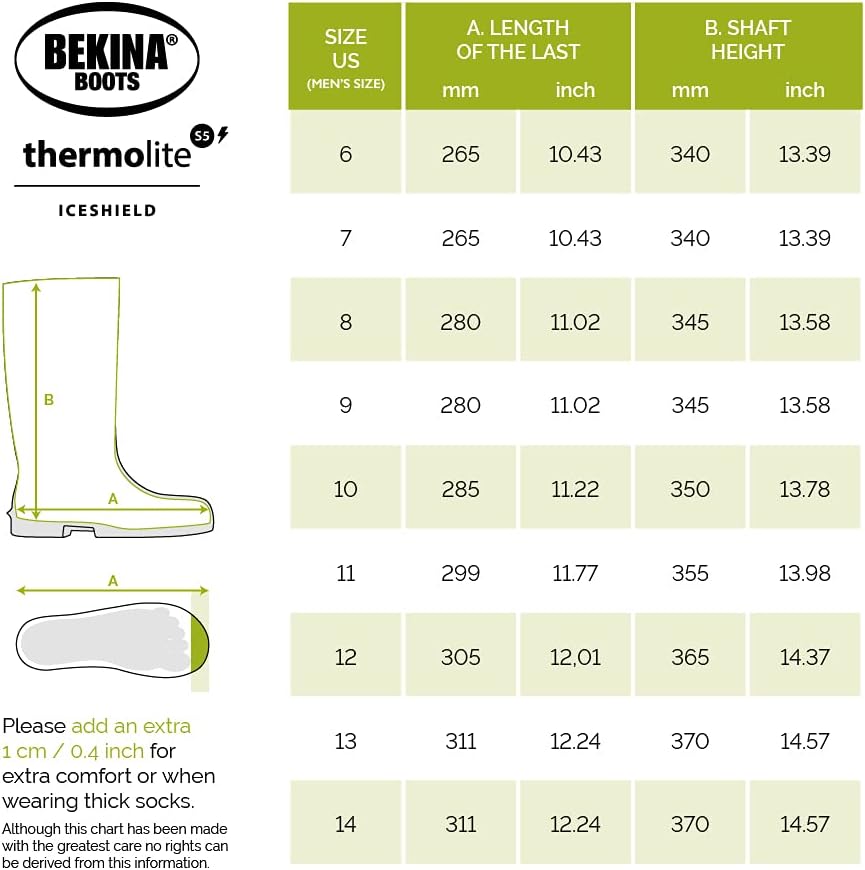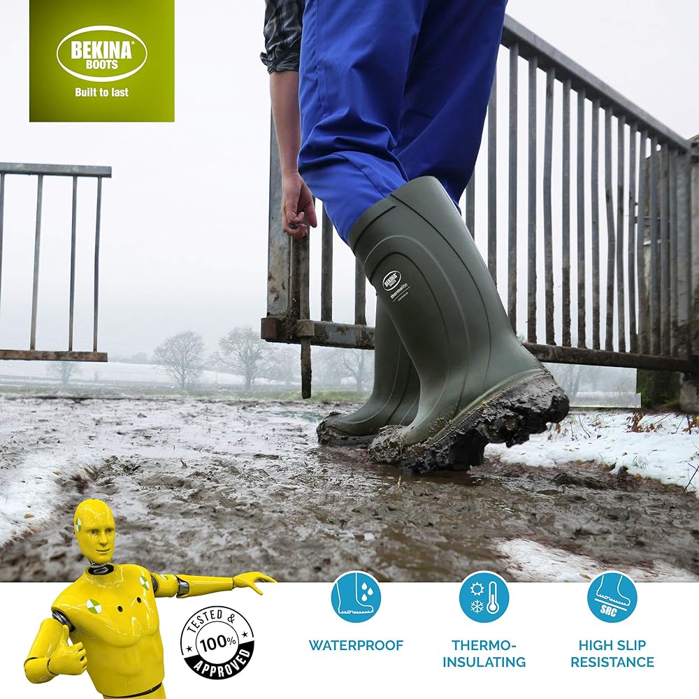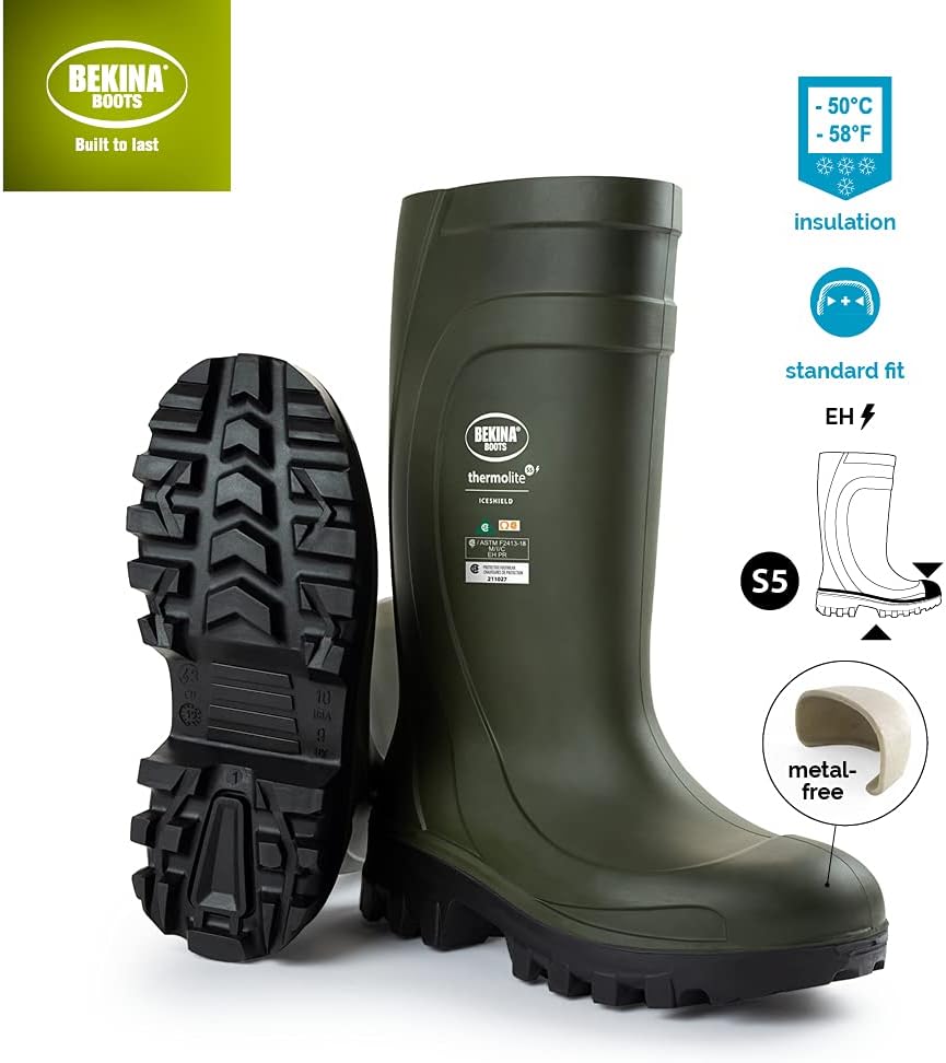 أحذية أمان ذات درجة احترافية مشهورة من Bekina Boots تتفوق في الأعمال الزراعية والصناعية في الطقس البارد، وصيد الأسماك، ومستودعات التخزين البارد، ومعالجة الطعام، ومراكز التزلج، وكأحذية تخييم مقاومة للماء في عطلات نهاية الأسبوع الثلجية.