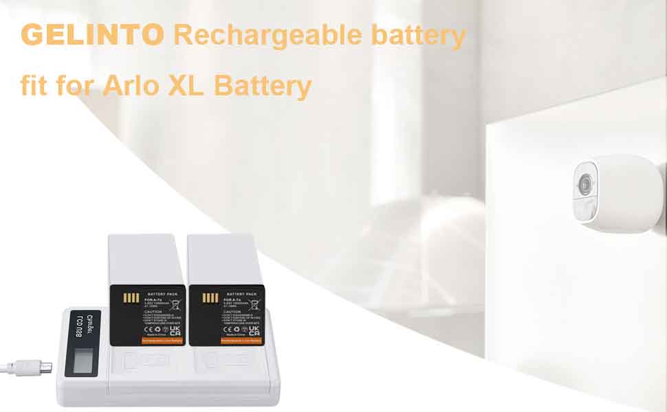 GELINTO 2 حزمة بطارية ممتدة XL قابلة لإعادة الشحن ومحطة شاحن بطارية مزدوجة تناسب كاميرا Arlo Pro 3 XL/Arlo Go 2 / Arlo Pro 4 XL/Pro 3 XL/Ultra 2 XL/Ultra XL [3.63V/47.19Wh/13000mAh]