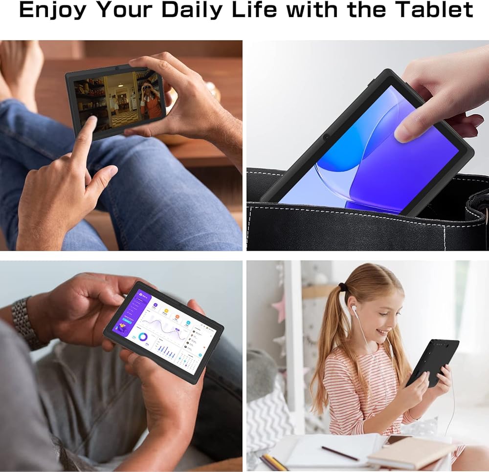 【كمبيوتر لوحي عالي الأداء】يعتمد جهاز Android 11 اللوحي مقاس 7 بوصات على أحدث نظام Android 11.0، ومعالج رباعي النواة قوي وموفر للطاقة، مما يجعل التطبيقات تعمل بشكل أسرع وأكثر سلاسة، ويوفر لك تجربة ترفيه سريعة وطلاقة.