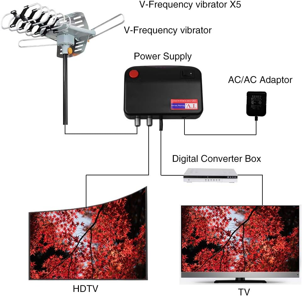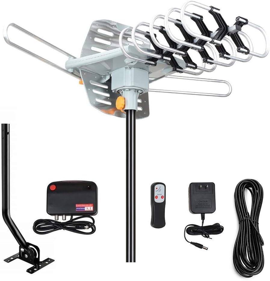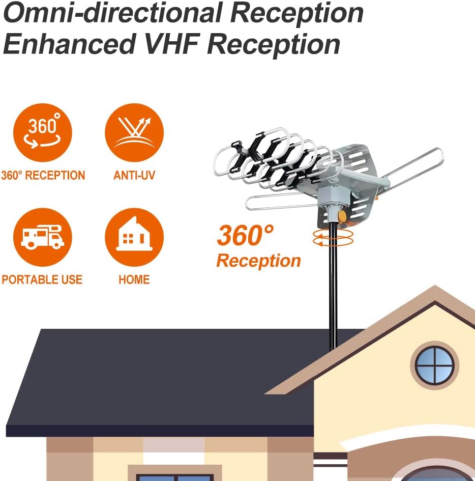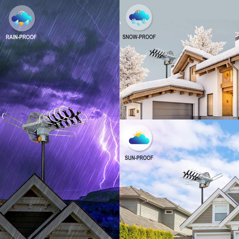 📺مدمج بمضخم صوت منخفض للغاية، دوران 360 درجة، يتضمن كابل محوري لهوائي تلفزيون عالي الدقة بطول 33 قدمًا. تصميم متين مع التأريض - لا تنزعج من سوء الأحوال الجوية.