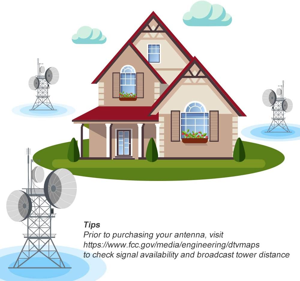 📺150 ميلًا طويل المدى يتلقى إشارات تلفزيونية عالية الوضوح للبث الرقمي؛ دعم تلفزيون عالي الدقة بالكامل 4K، 720p، 1080i، 1080p، مما يوفر لك تجربة مشاهدة البث التلفزيوني المباشر! لا حاجة لدفع رسوم إضافية للكابل أو الأقمار الصناعية!