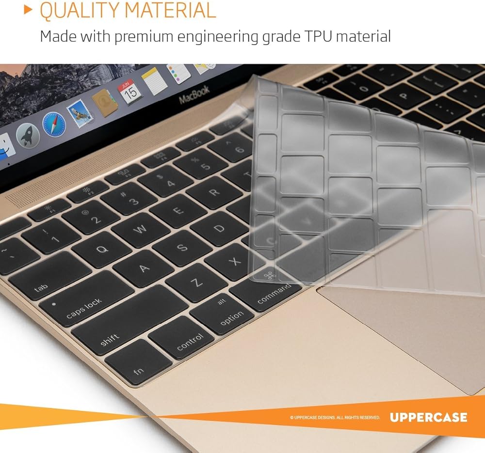 مصنوع من بلاستيك البولي يوريثين الحراري الممتاز (وليس السيليكون)، يوفر غطاء الكيبورد هذا حماية غير عائقة لكيبورد ماك بوك 12 انش ضد الانسكابات والغبار والملوثات الأخرى.