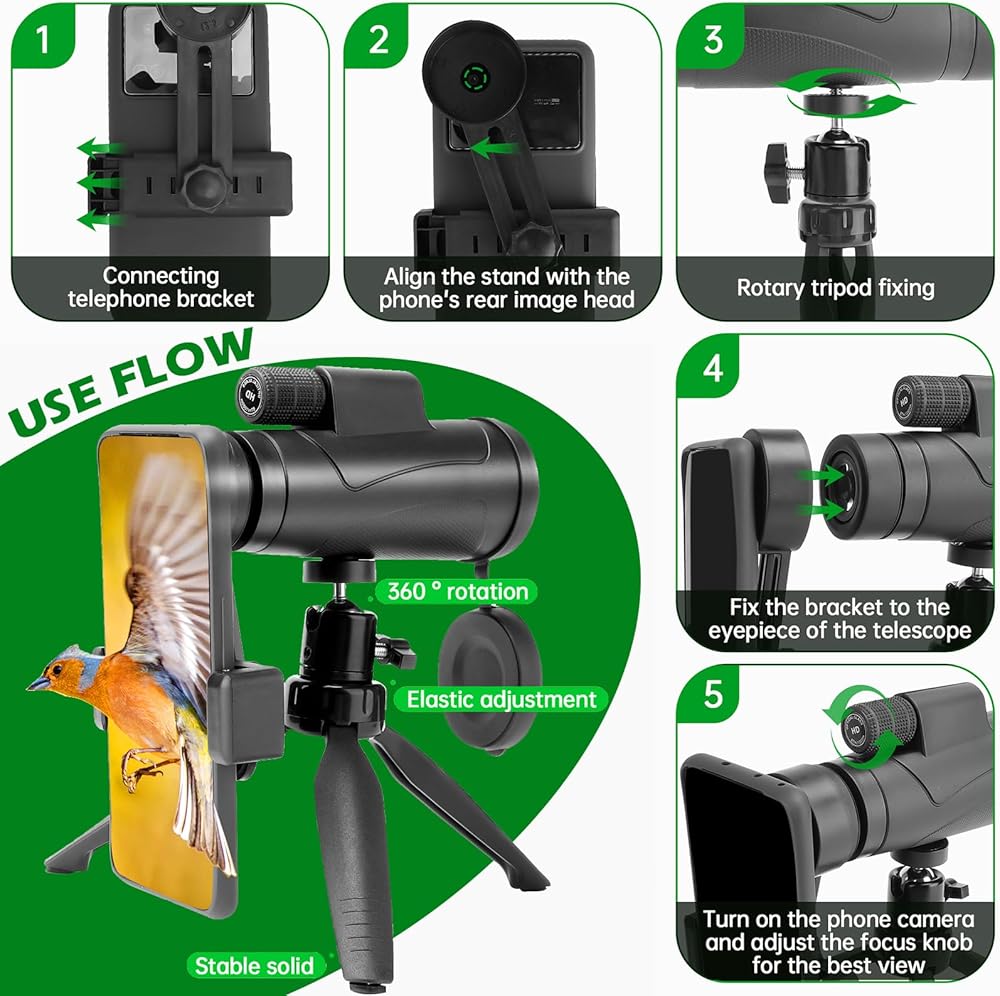 لدينا تلسكوب أحادي نطاق واسع من التطبيق ويمكن استخدامه في التخييم، وتسلق الجبال، ومشاهدة الطيور، والحفلات الموسيقية، الخ. ونعد بأن جميع المواصفات والمعلمات دقيقة وصحيحة.