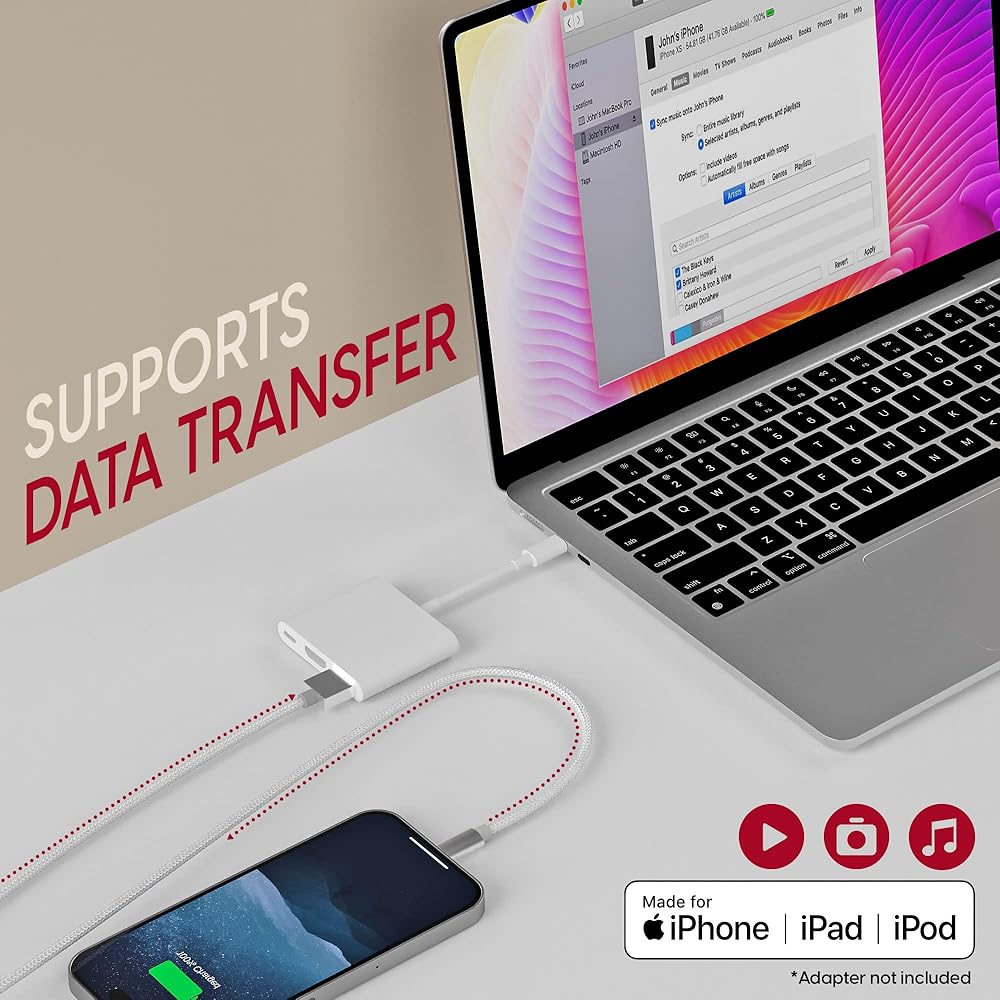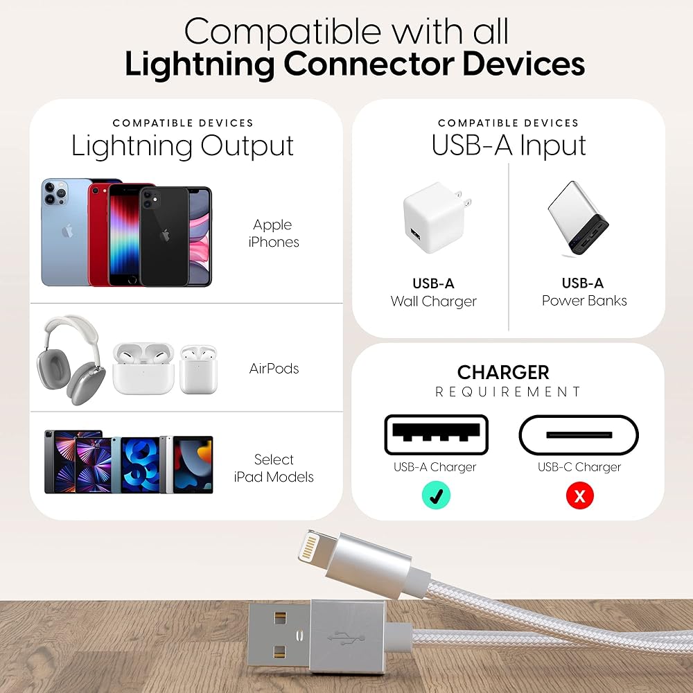 متوافق مع لايتنينج: لهاتف ابل ايفون 12 / 12 برو / 12 برو ماكس / 12 ميني / 11 / 11 برو / 11 برو ماكس / اكس اس / اكس اس ماكس / اكس ار / اكس / 8 / 8 بلس / 7 / 7 اس / 6 اس بلس / 6 اس / 6 بلس / 6 / ايباد برو، اير 1-2، ميني 1-4، الجيل الرابع / / / آي بود تاتش 5 gen/ iPod Nano الجيل السابع