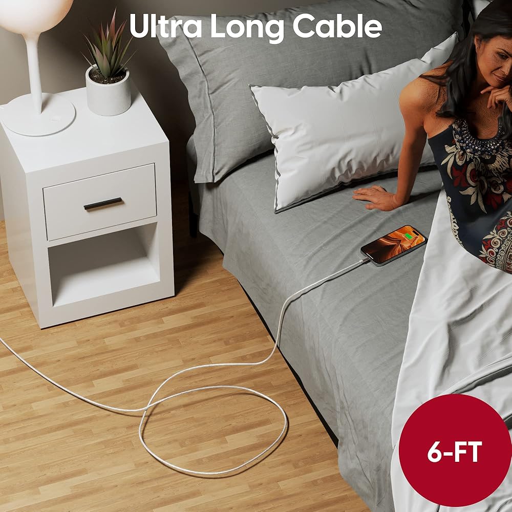 شاحن آيفون: كابل لايتنينج بطول 6 أقدام يوفر شحنًا سريعًا بأقصى سرعة من أي محول شاحن حائط USB أساسي أو شاحن محمول إلى جهاز ايفون 12، 11، XR، XS، X، 8، 7، 6، 5، SE - يعمل أيضًا بشكل رائع مثل شاحن ابل ايباد اير أو برو أو ايباد ميني
