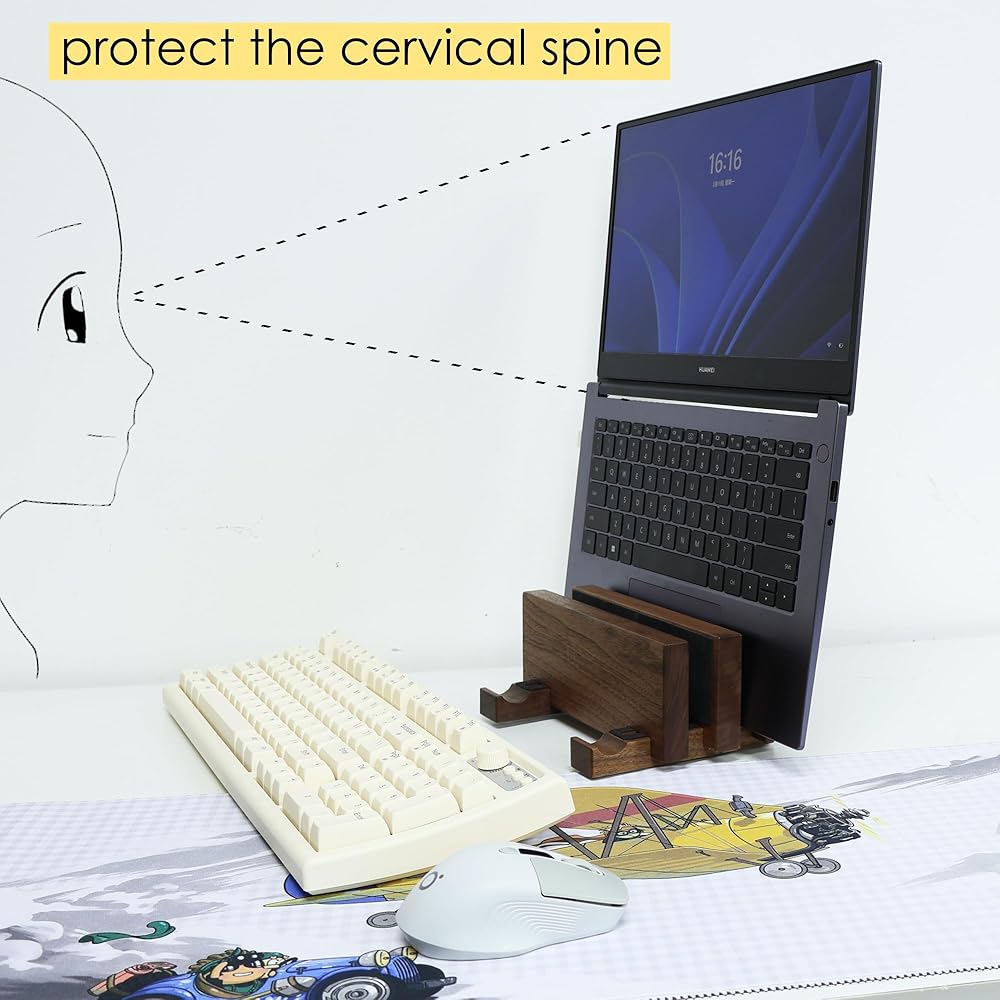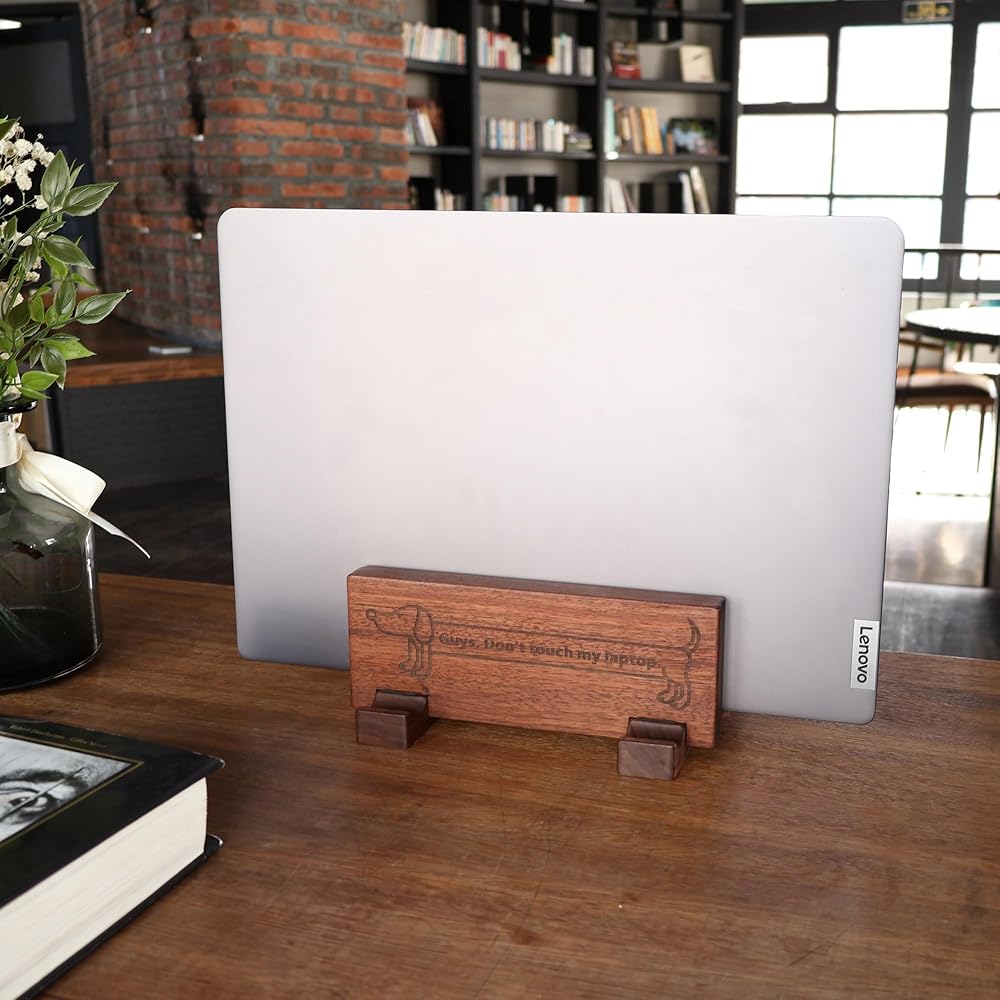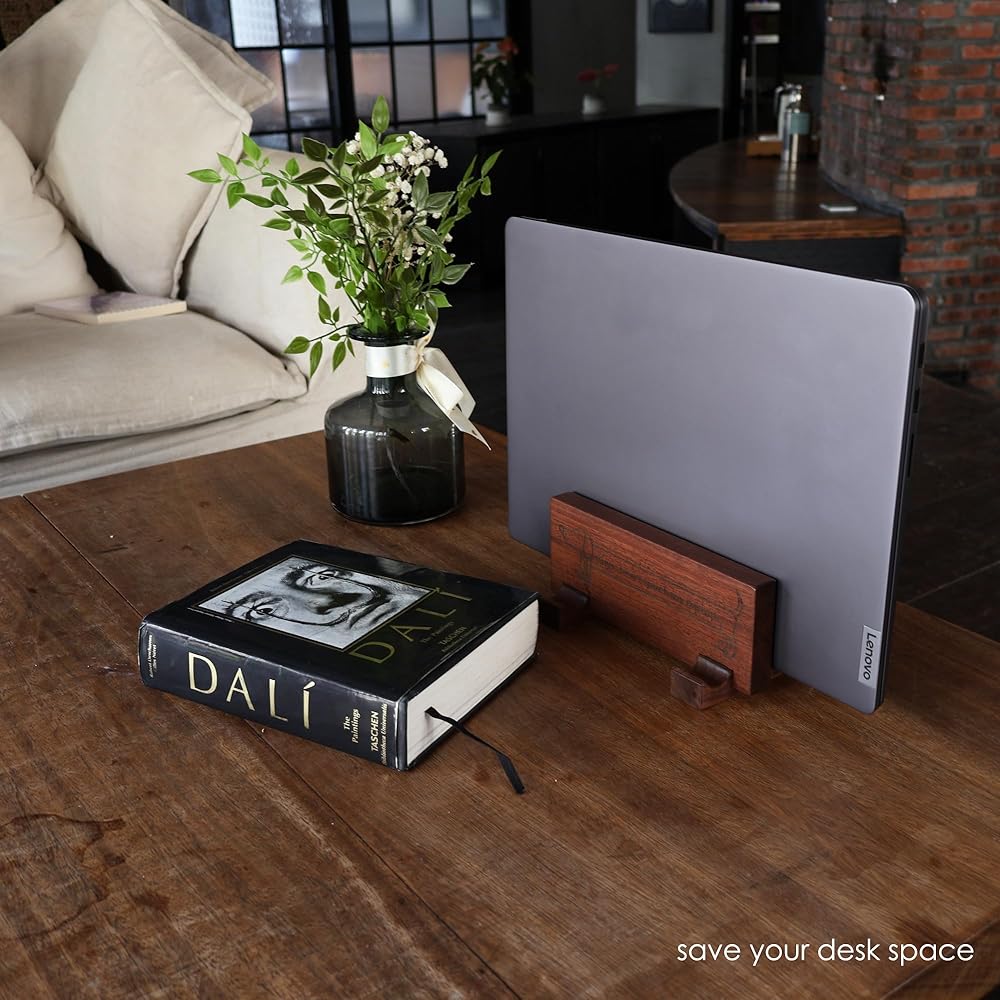 حامل كمبيوتر محمول عمودي للمكتب، حامل كمبيوتر محمول خشبي يمكن تغيير حجمه، مناسب لأجهزة الكمبيوتر المحمولة ذات السُمك والأحجام المختلفة. يمكنه استيعاب 3 أجهزة على الأقل
