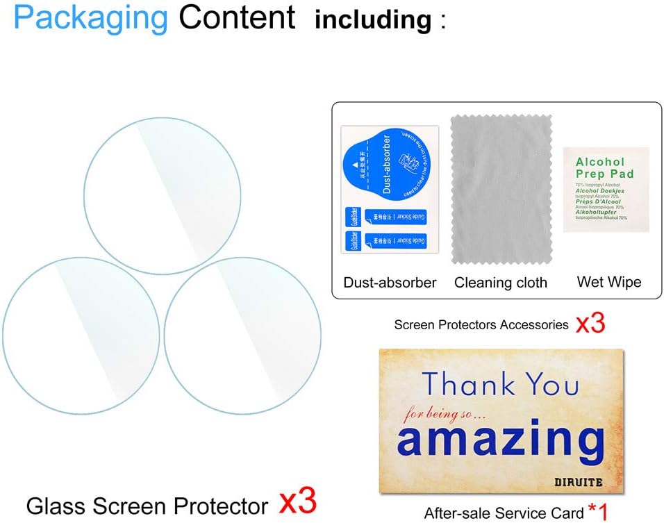 • 【تحتوي المجموعة】3 × واقي شاشة زجاجي، مجموعة تركيب × 3. بطاقة خدمة ما بعد البيع × 1